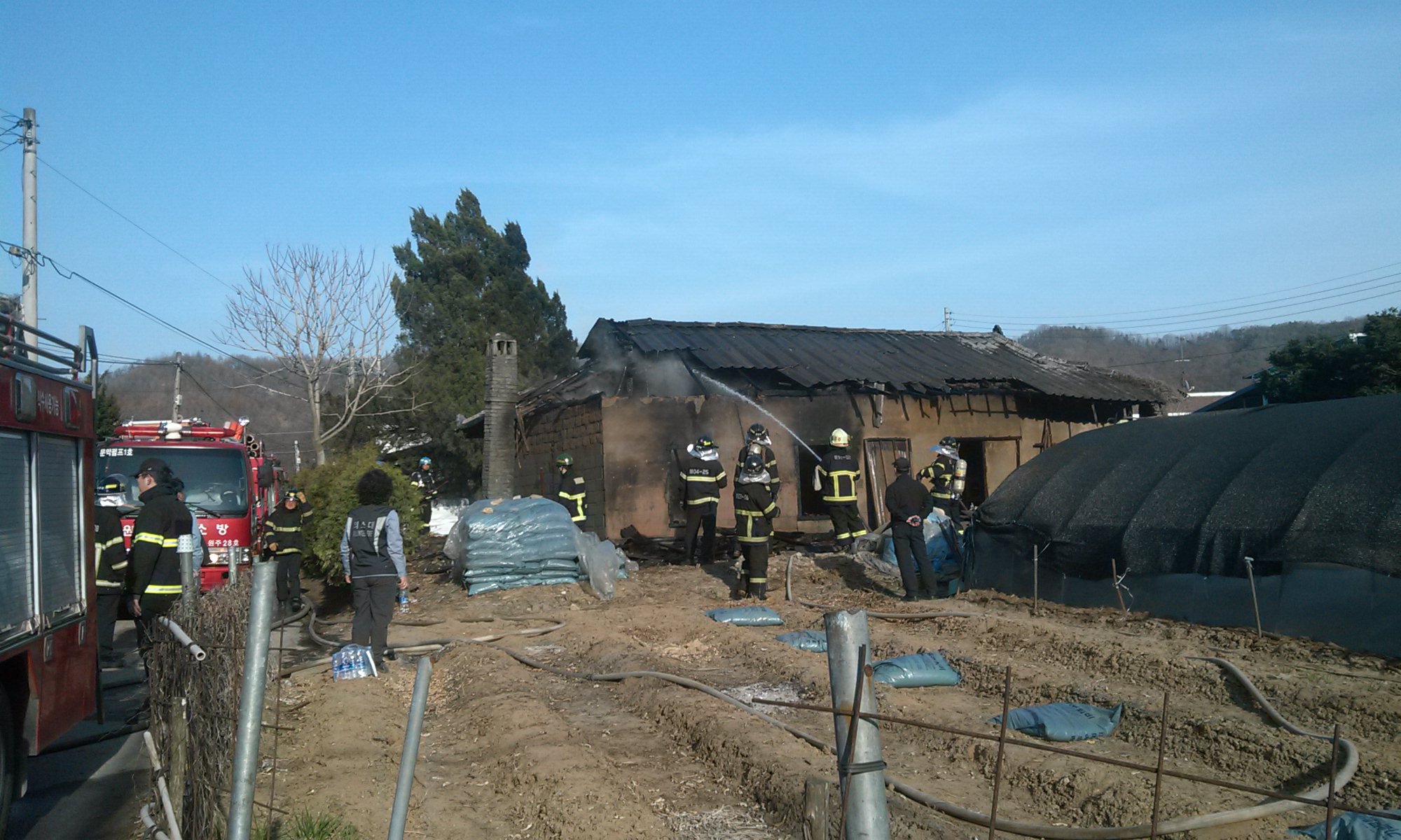2013년3월29일 16:22분경 지정면 월송1리 마을회관 인근 주택화재 발생하여 지정남여 의용소방대 대원여러분들이 출동하였습니다.