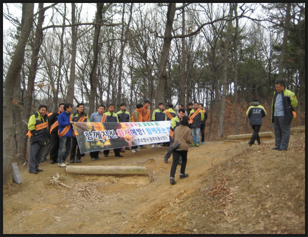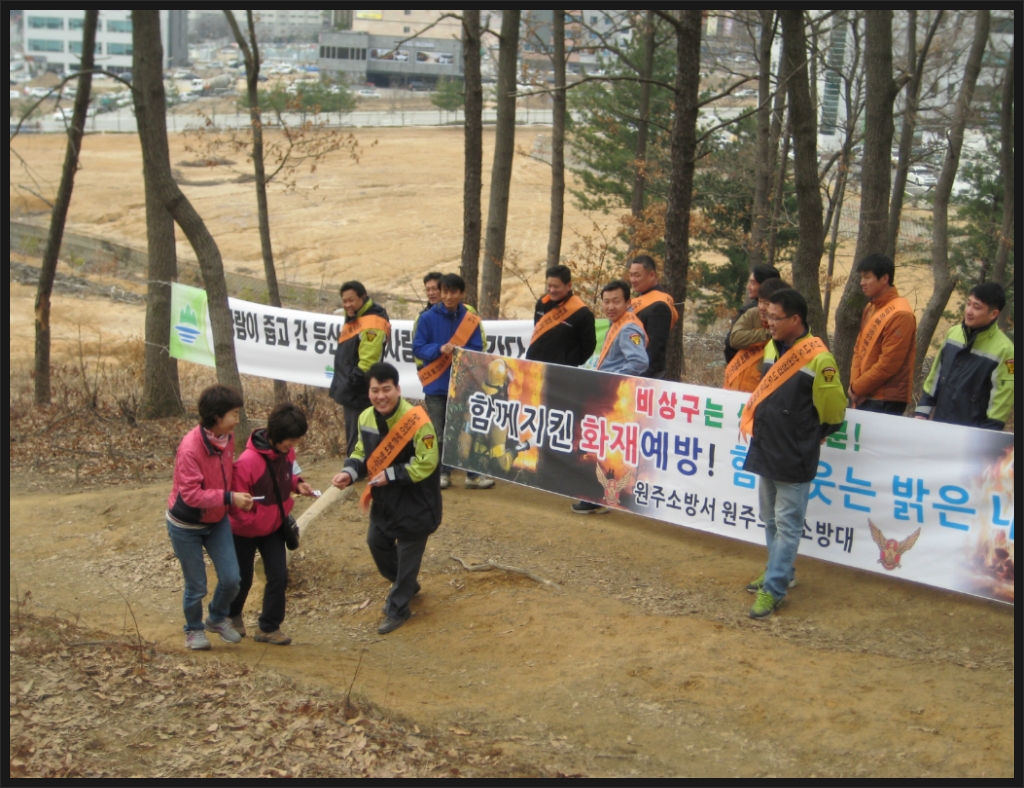 원주의용소방대(대장 조성일)는 3월22일 오후시간에 봉화산 지역에서 산불예방 켐페인을 대원 46명이 참가하여 실시했습니다
