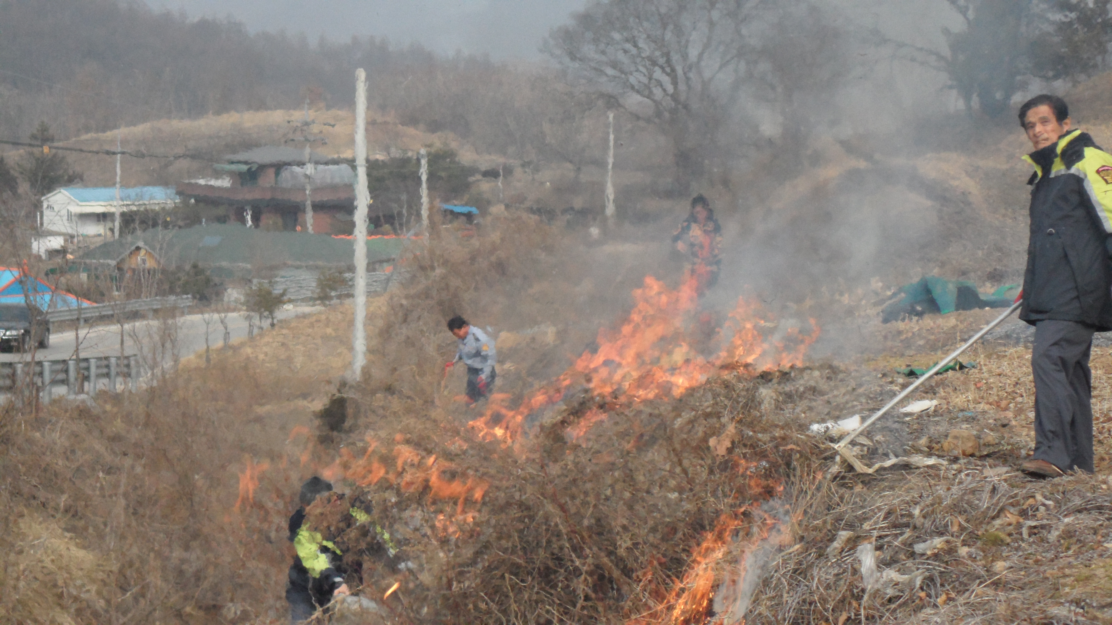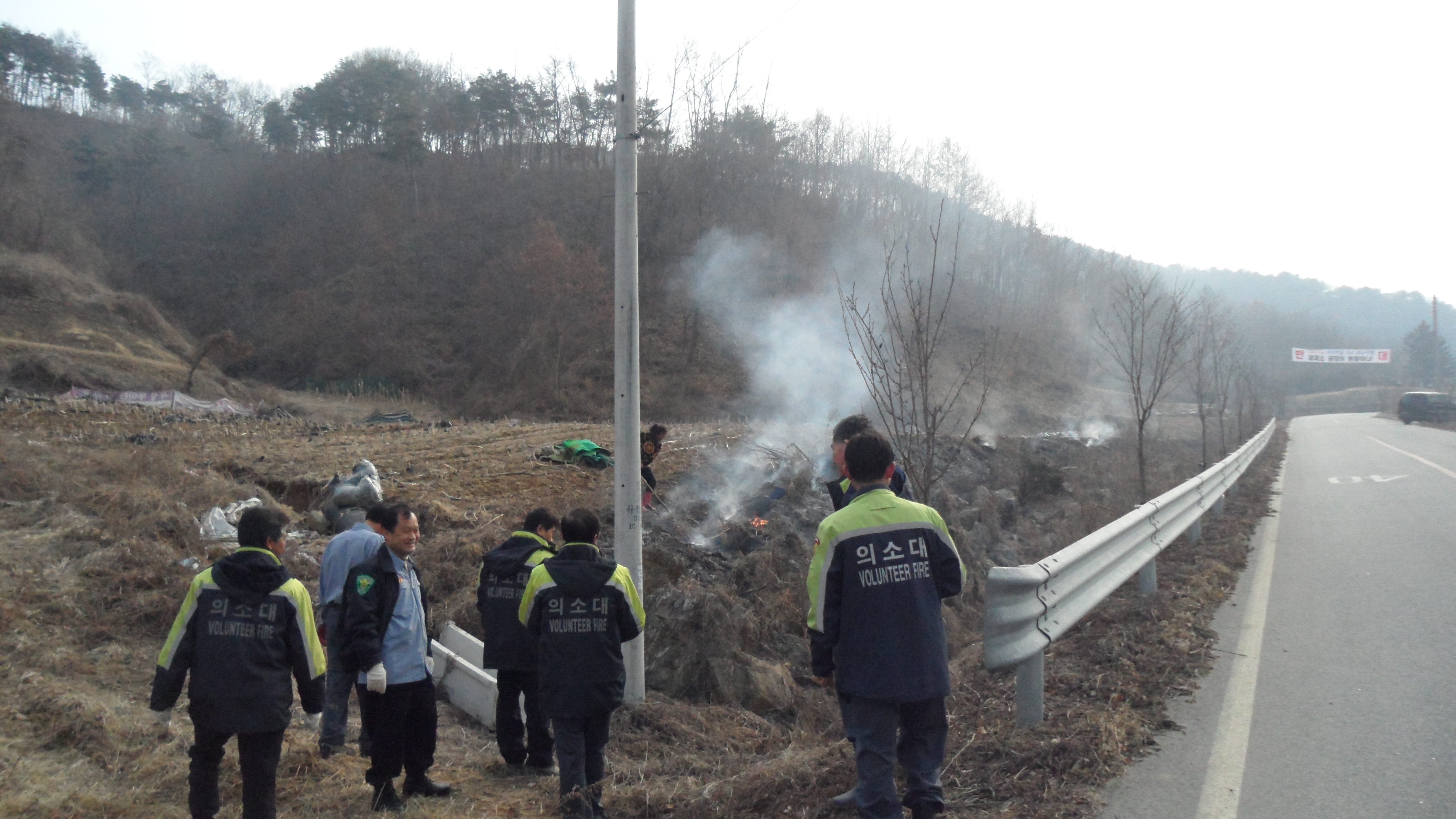 원인규대장외21명은 정기교육을 끝내고, 관내 논두렁. 밭고추대 소각활동에 참여하여 특이사항없이