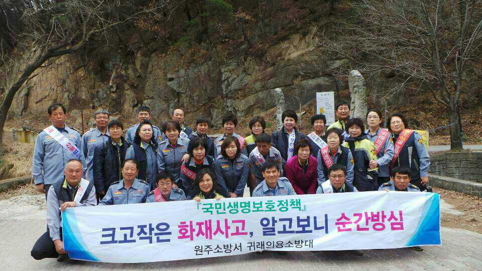 3월29일 귀래 남녀의용소방대 천운사 산불예방켐페인을 실시하였습니다