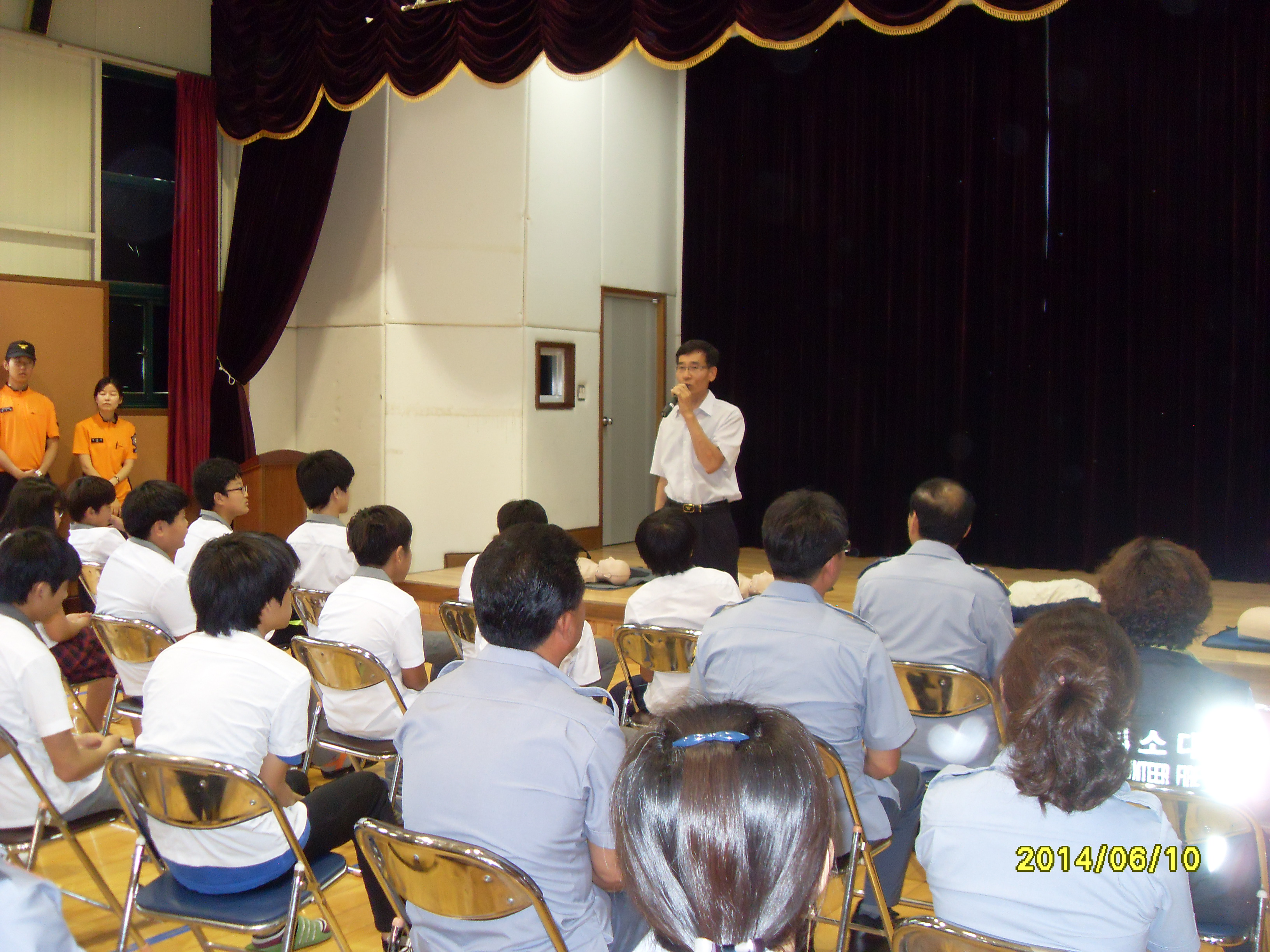 2014년6월10일 호저 의용소방대는 호저중학교 학생들과 함께 심폐소생술 교육 및 실습을 하였습니다,
