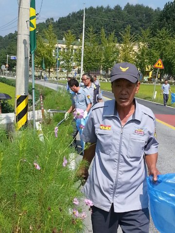 교육이 끝난 후 호저의용소방대원은 호저면 진입도로 주위의 환경정화 활동으로 도료 주변의 쓰레기 줍기 봉사 활동을 진행 하였습니다.