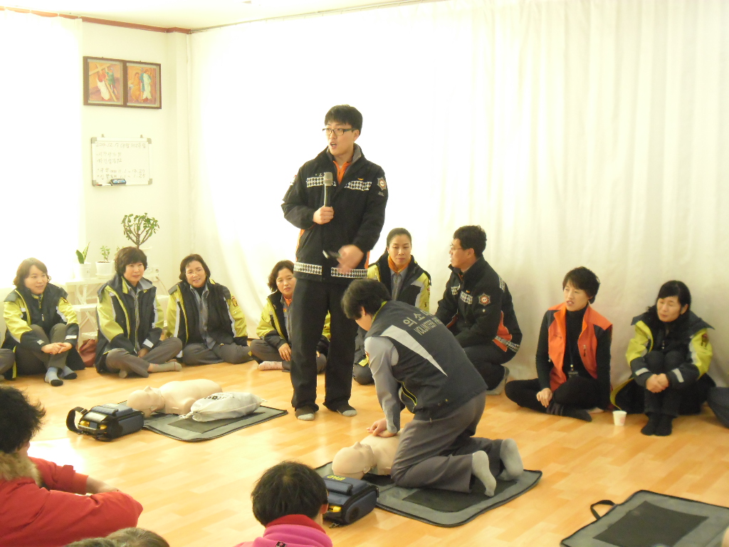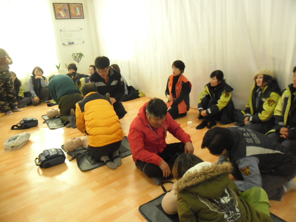 위급한 상황에서 환자를 어떻게 다루고 119에 는 어떤 조치를 취하는지에대하여 한분한분꼐 시범을 보이고