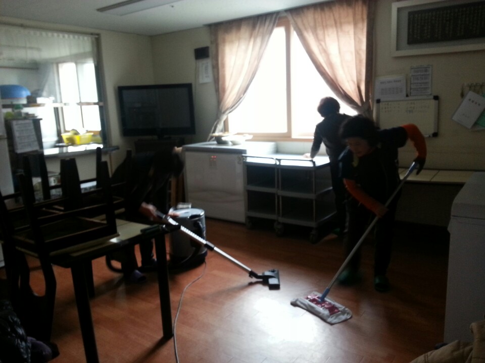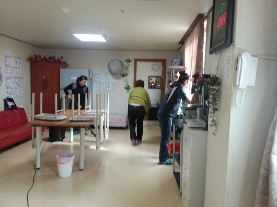 요양오신 할머니와 할아버지들의 방을 깨끗히 청소하였습니다.