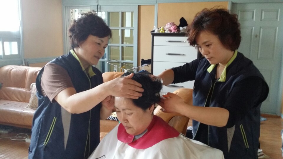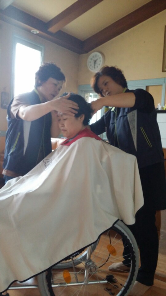 2015년4월26일 지정여성대 박인수대장외3명은 몸이 불편하신분의 집을 방문하여 머리를 깍아 드리고 왔습니다