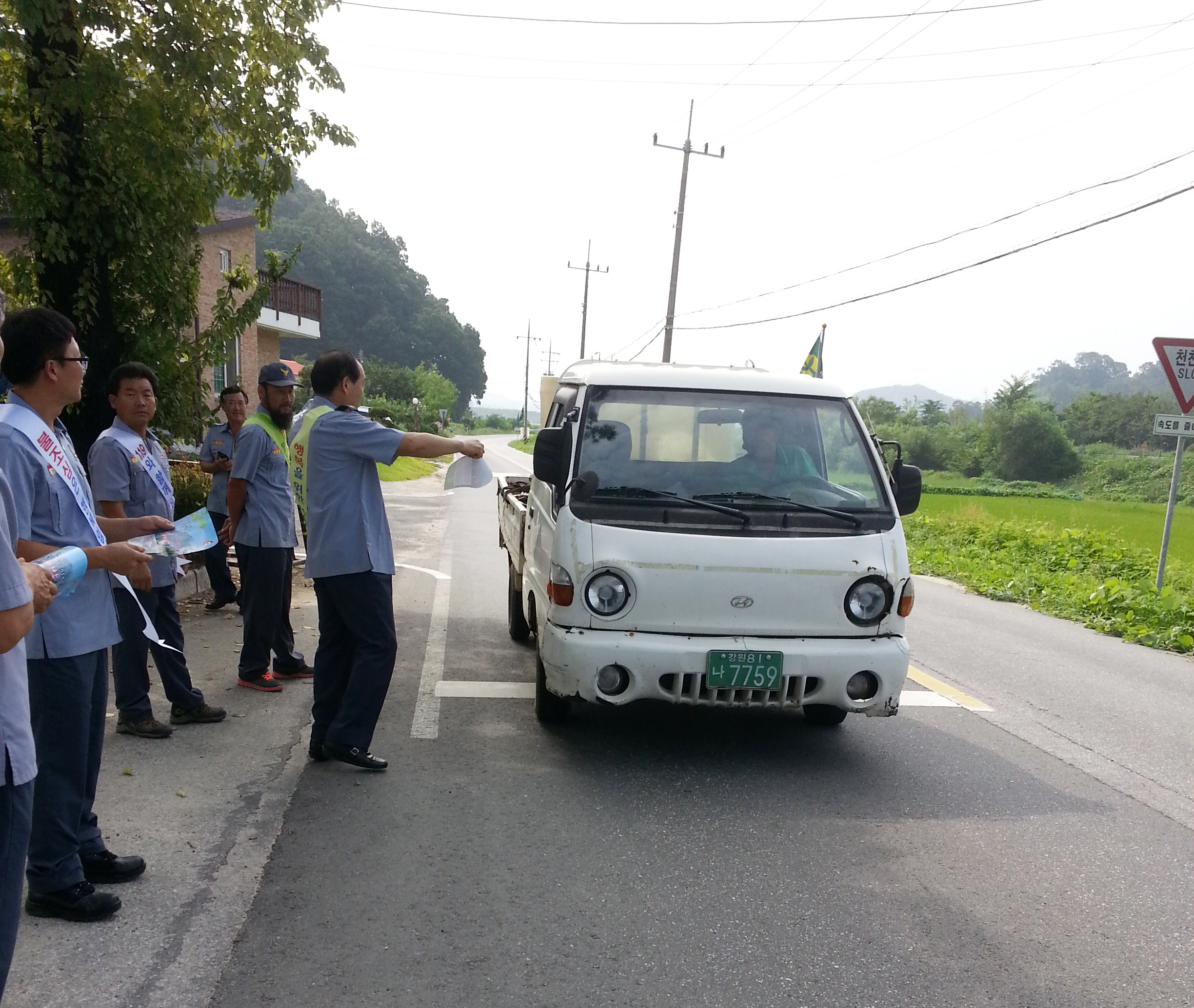 호저 남성의용소방대 8월 정기교육 장면입니다.