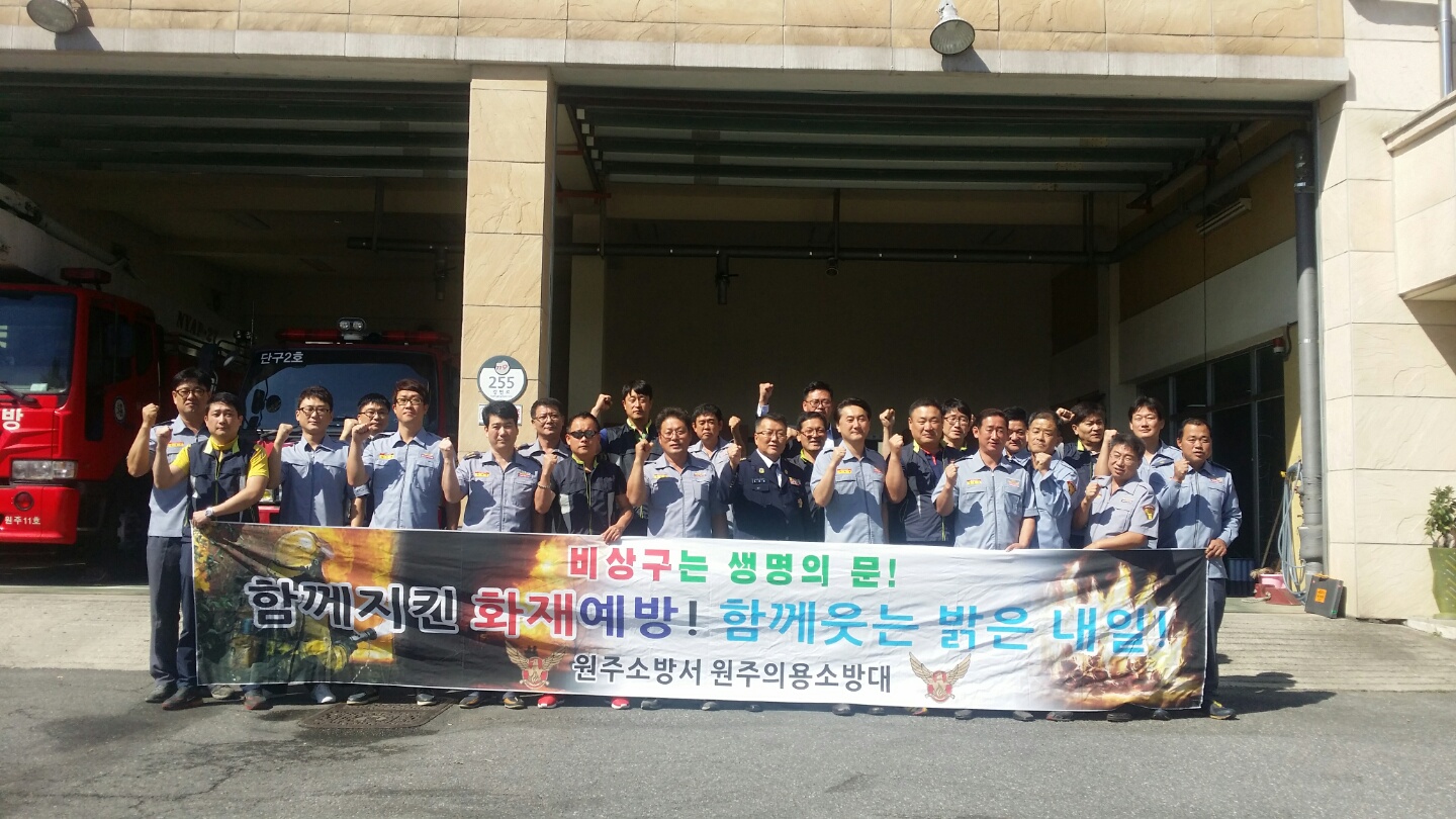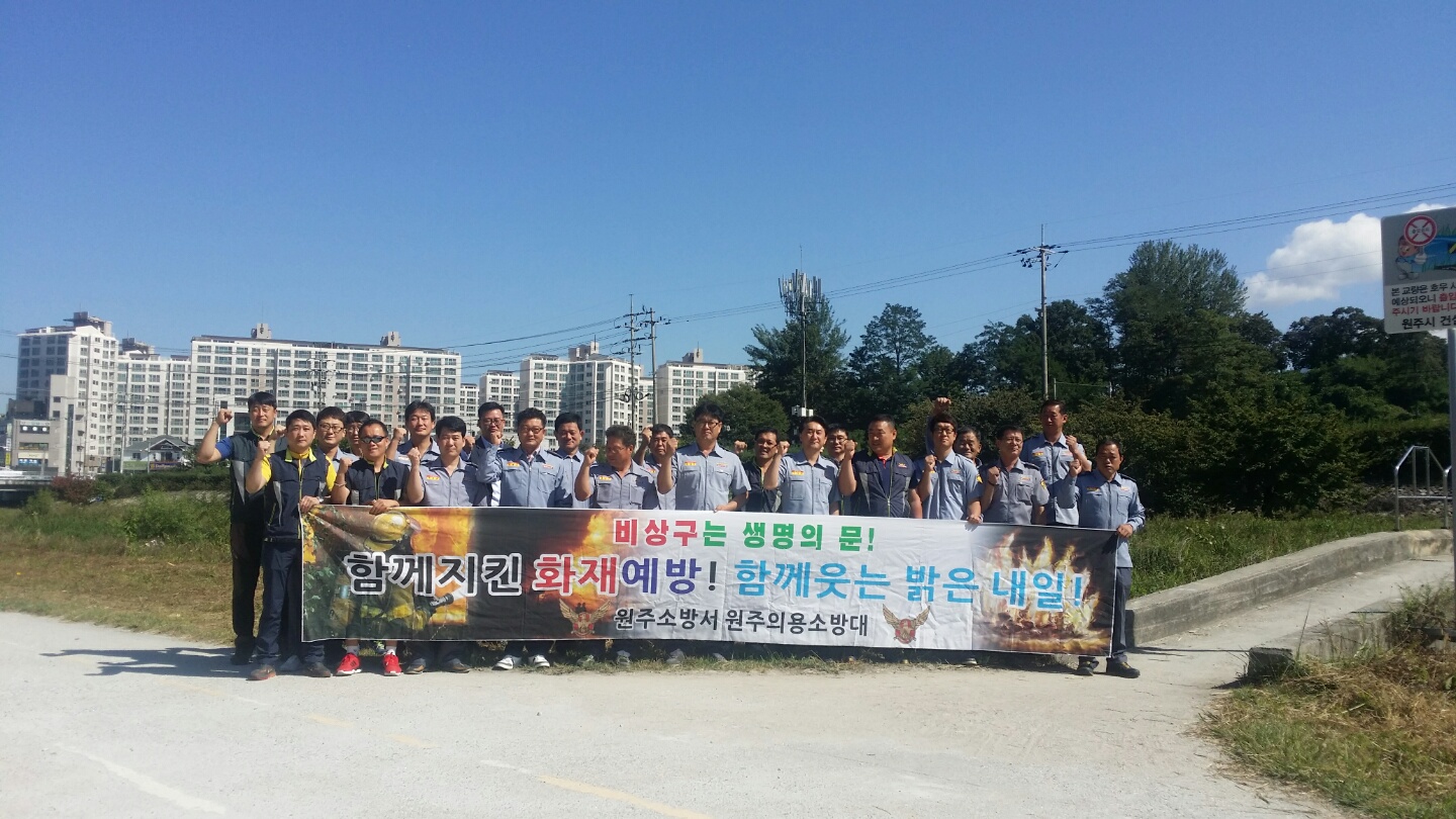 원주남성의용소방대 조성일대장외(42명)은 9월18일 정기교육 및 켐페인을 단구센터와 원주천 환경정화활동을 하였습니다.