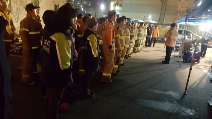2016년 3월18일 금요일 중앙시장 한가운데 있는 관광호텔에서 화재가 발생하여 김영연대장외 대원분들이 동참하여 봉사의 손길이