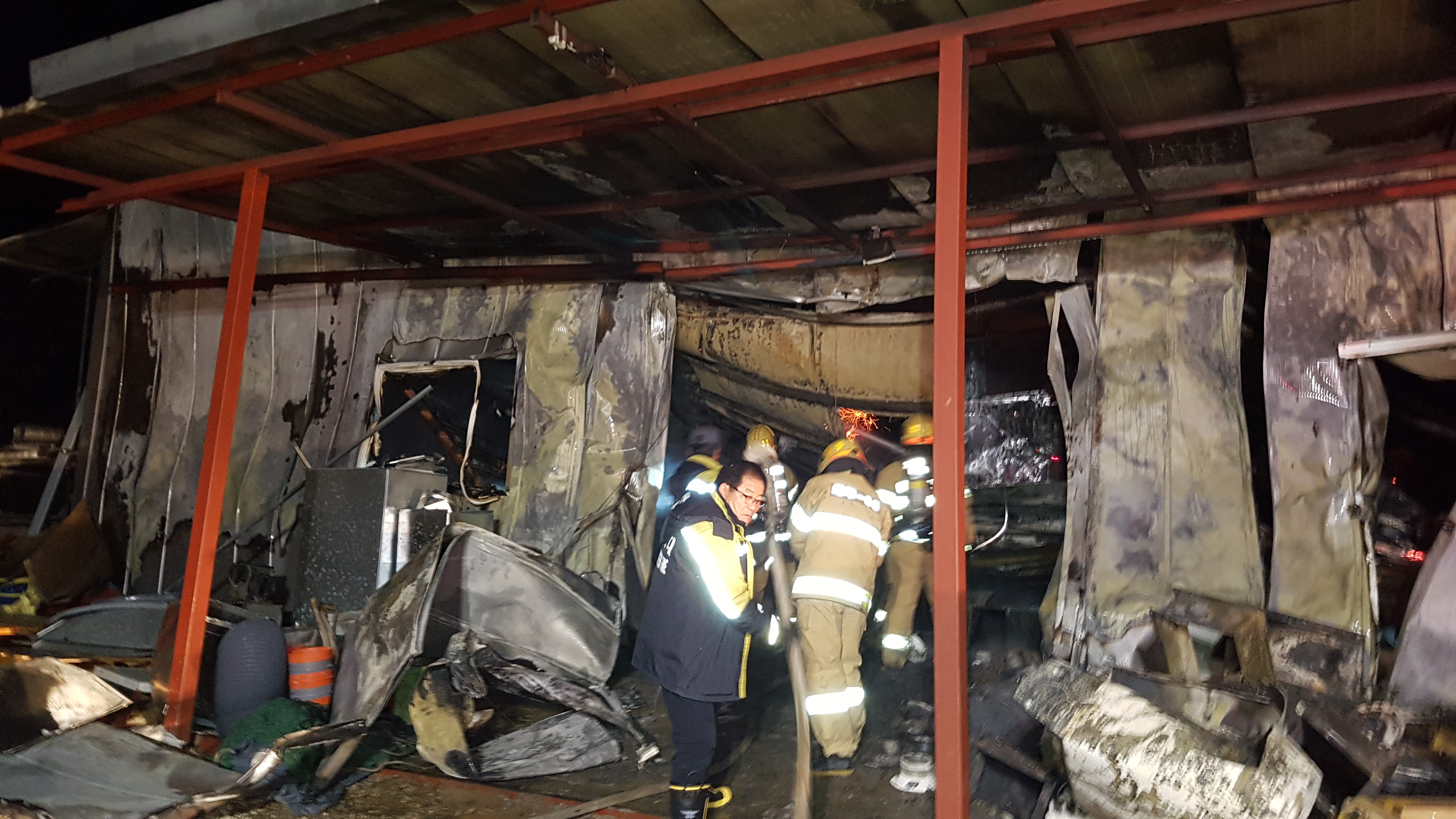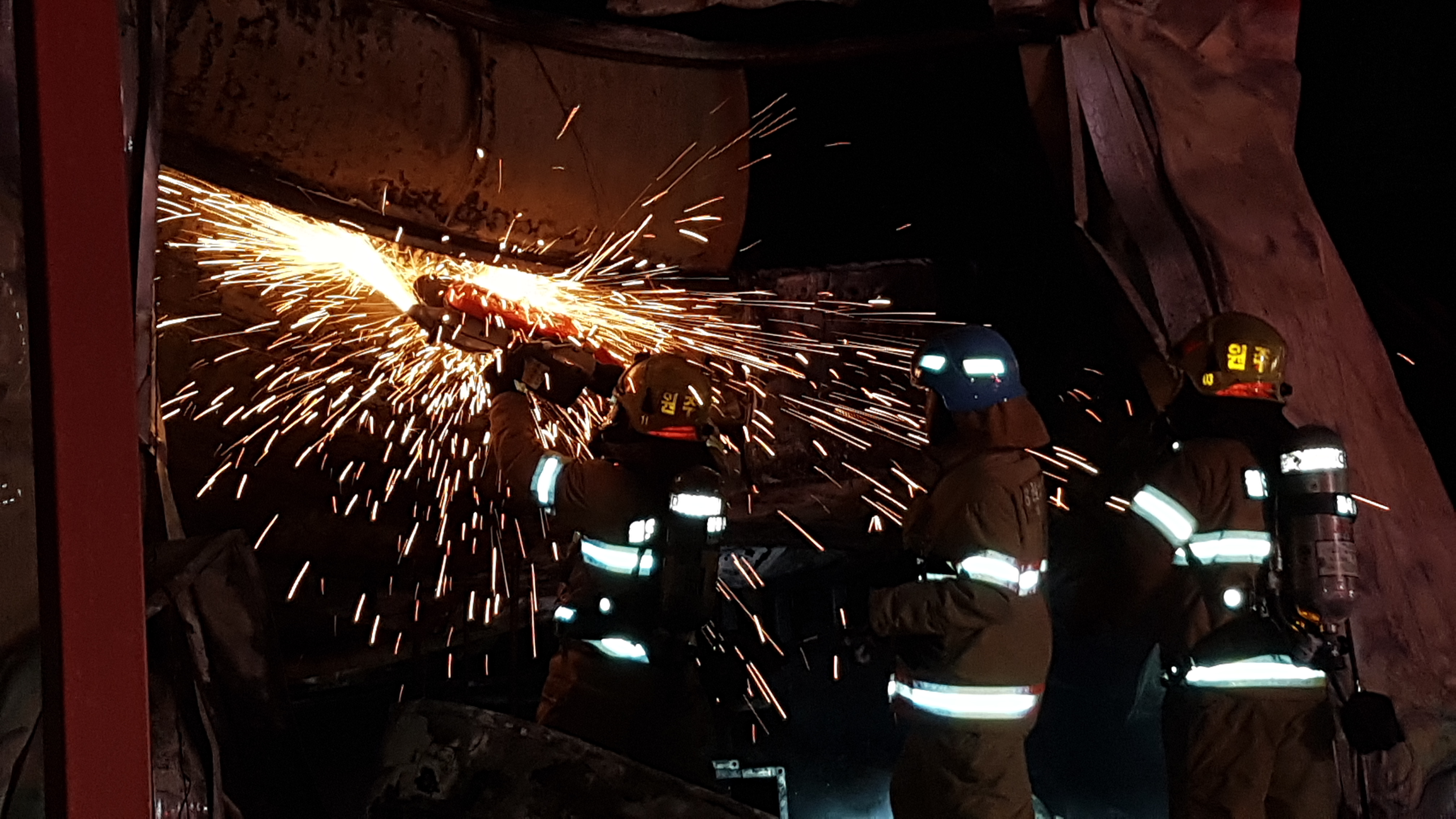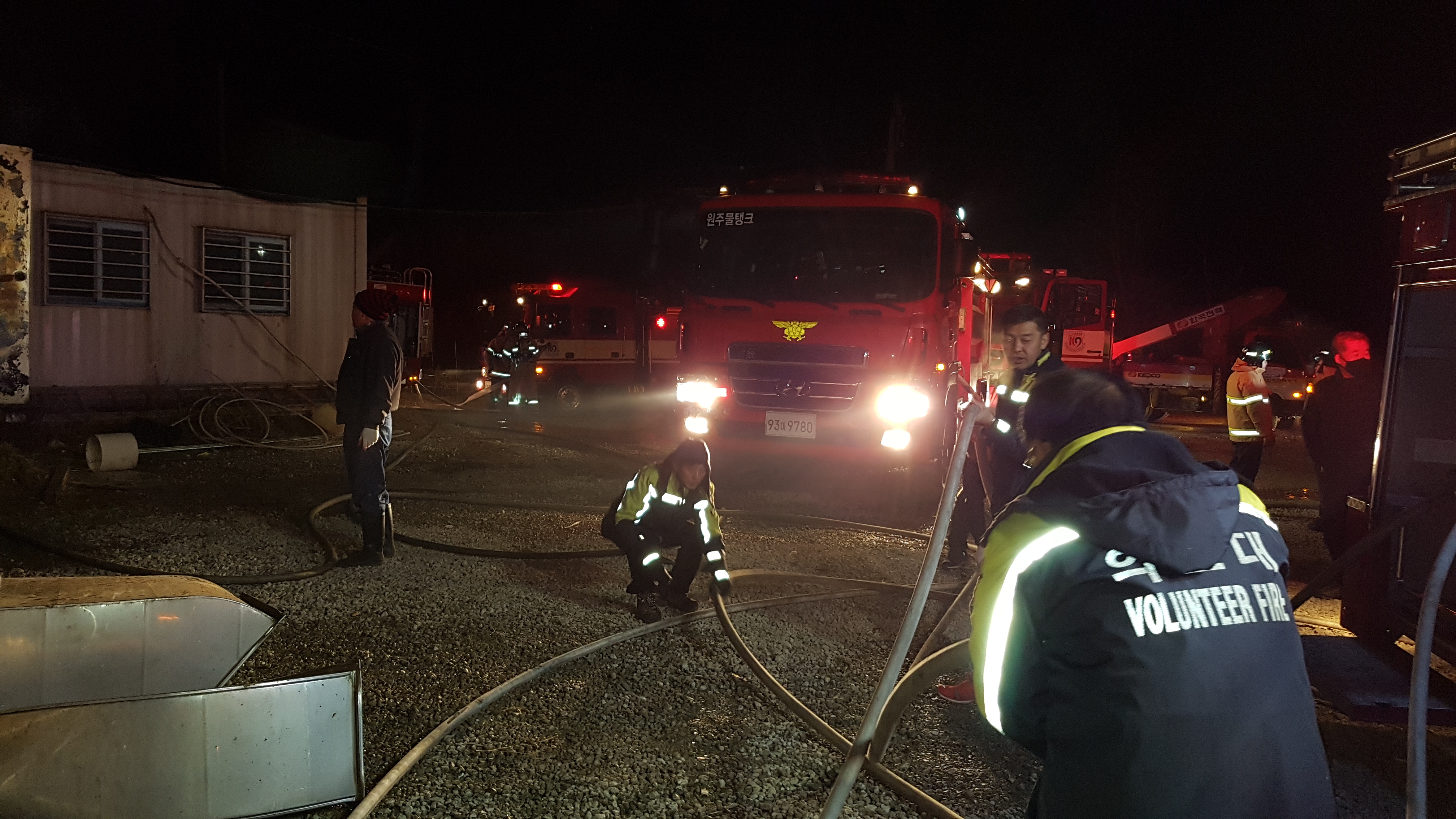 쌀쌀한 날씨에도 불구하고 화재 진압에 힘써 주신 직원분들과