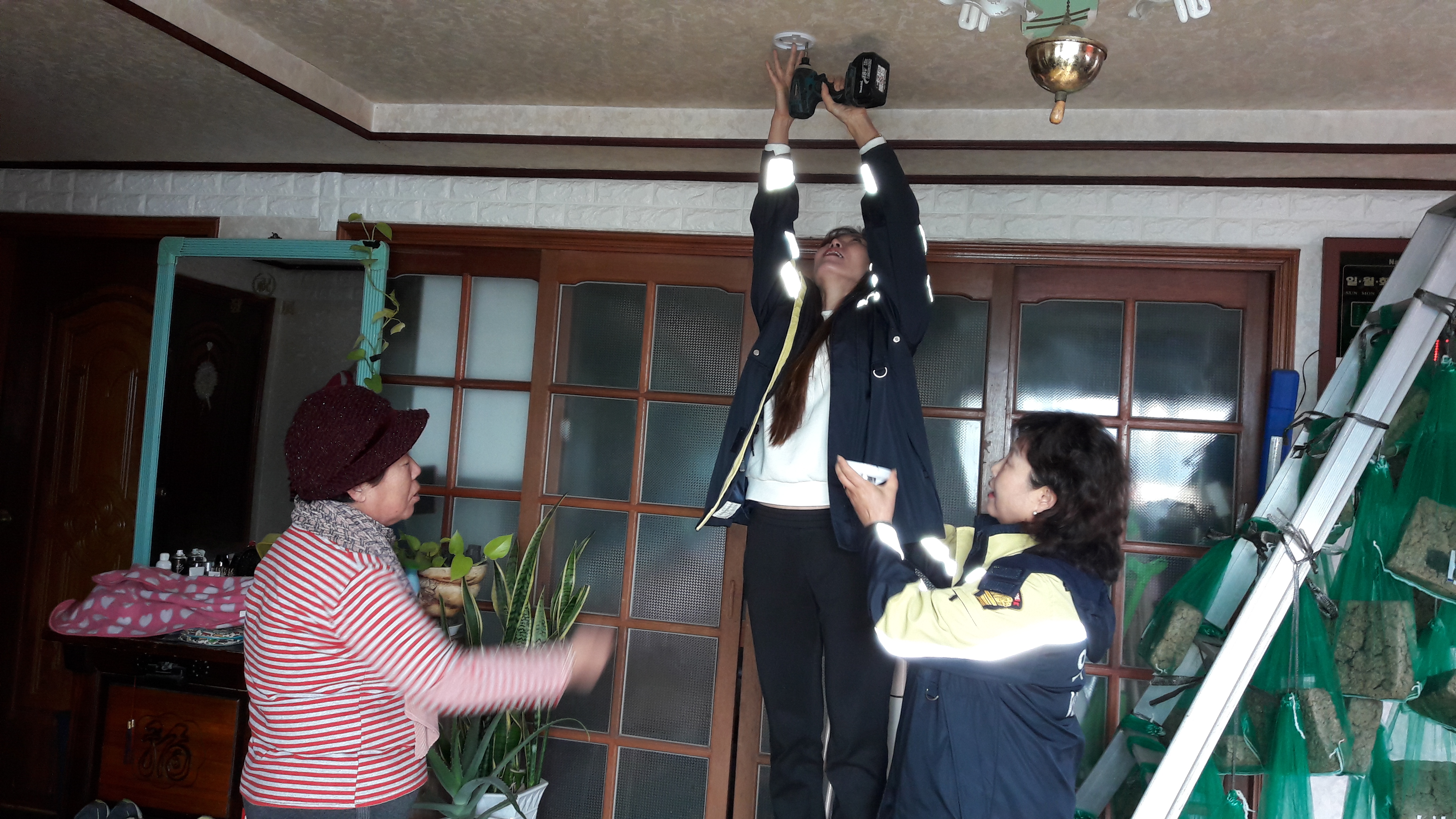 부론여성의용소방대에서는 정산2리 주택용 소방시설 공동설치시 독거노인댁을 방문