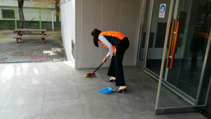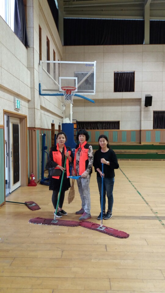 내용: 체육관 실내 바닥청소 및 입구먼지제거 쓰레기분리수거