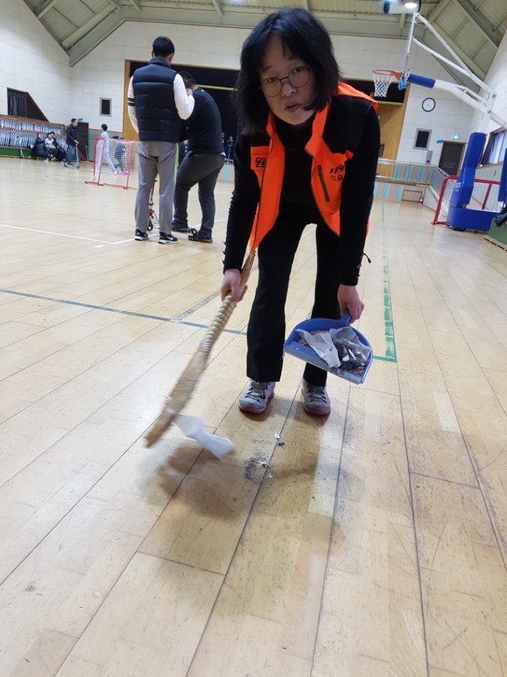 내용: 체육관 실내 바닥청소 및 입구먼지제거 쓰레기분리수거