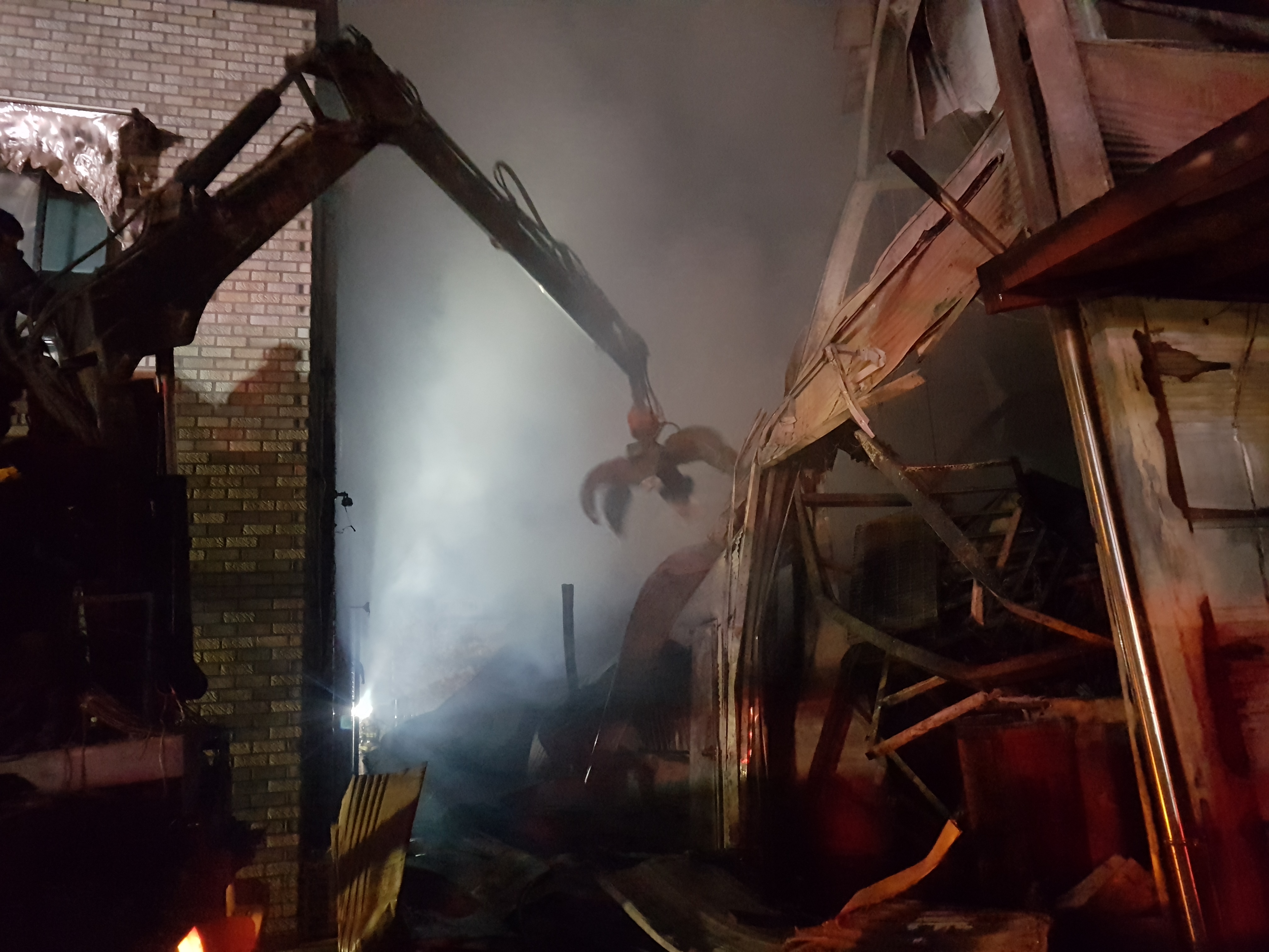 집게차와 굴삭기를 동원하여 마지막 남은 불씨까지 완진하는데 많은 시간이 소요 되었습니다.