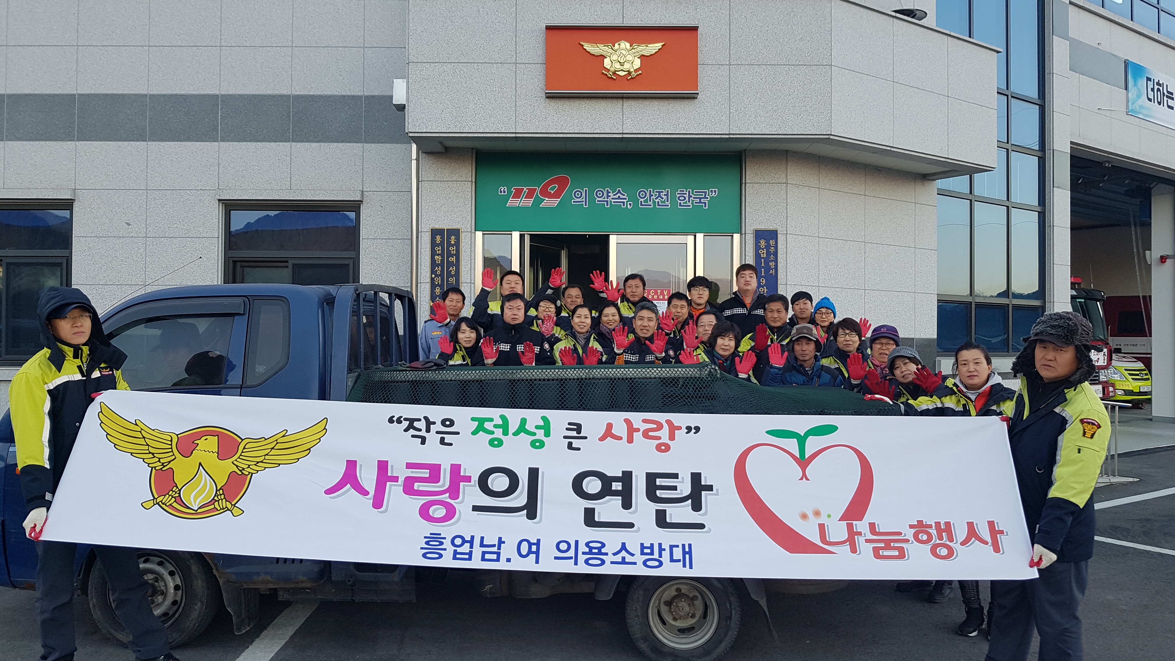 흥업남성의용소방대" 사랑의 연탄 나눔 "행사