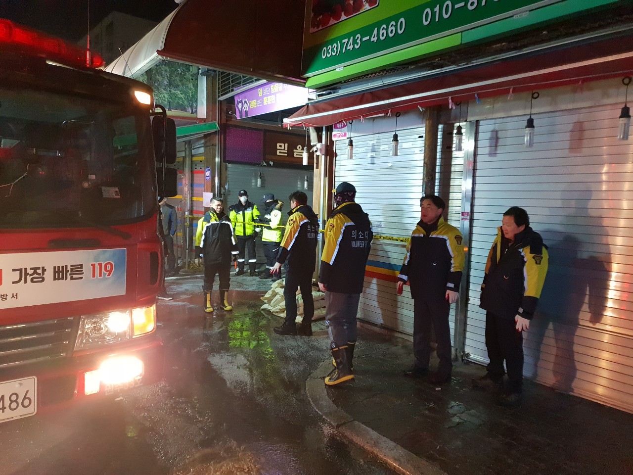 원주남성의용소방대 중앙시장 화재출동(1월3일)