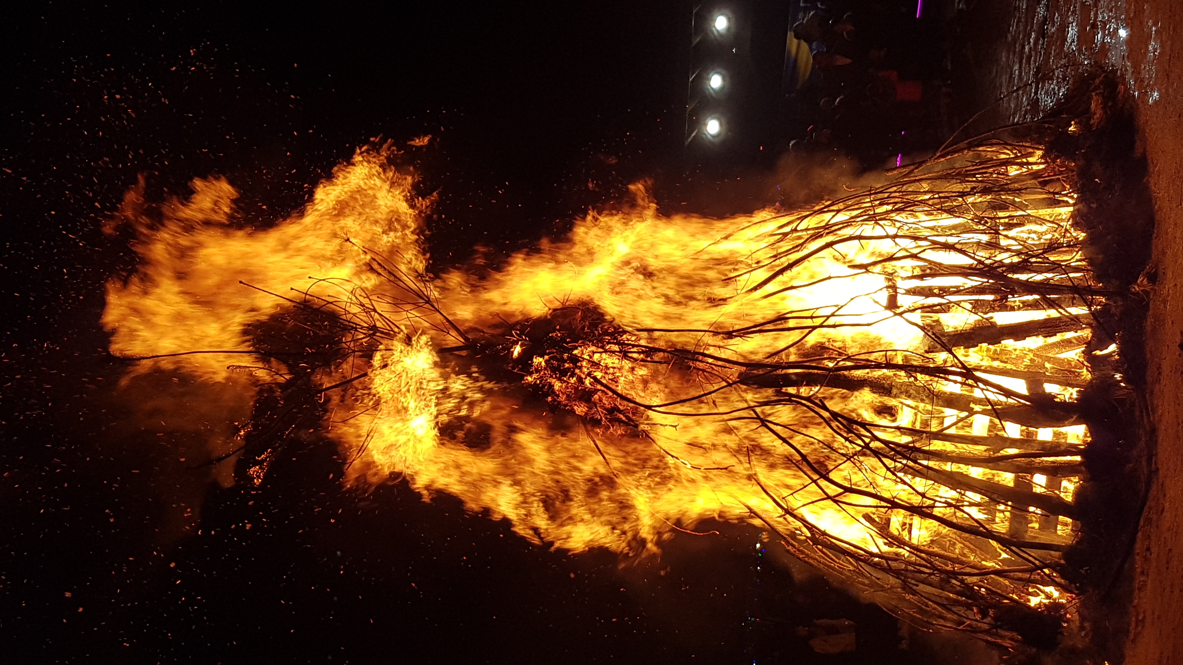 두 눈을 크게 떠고 주변 위험물 비취되어 있는 장소와 달집 설치되어 있는