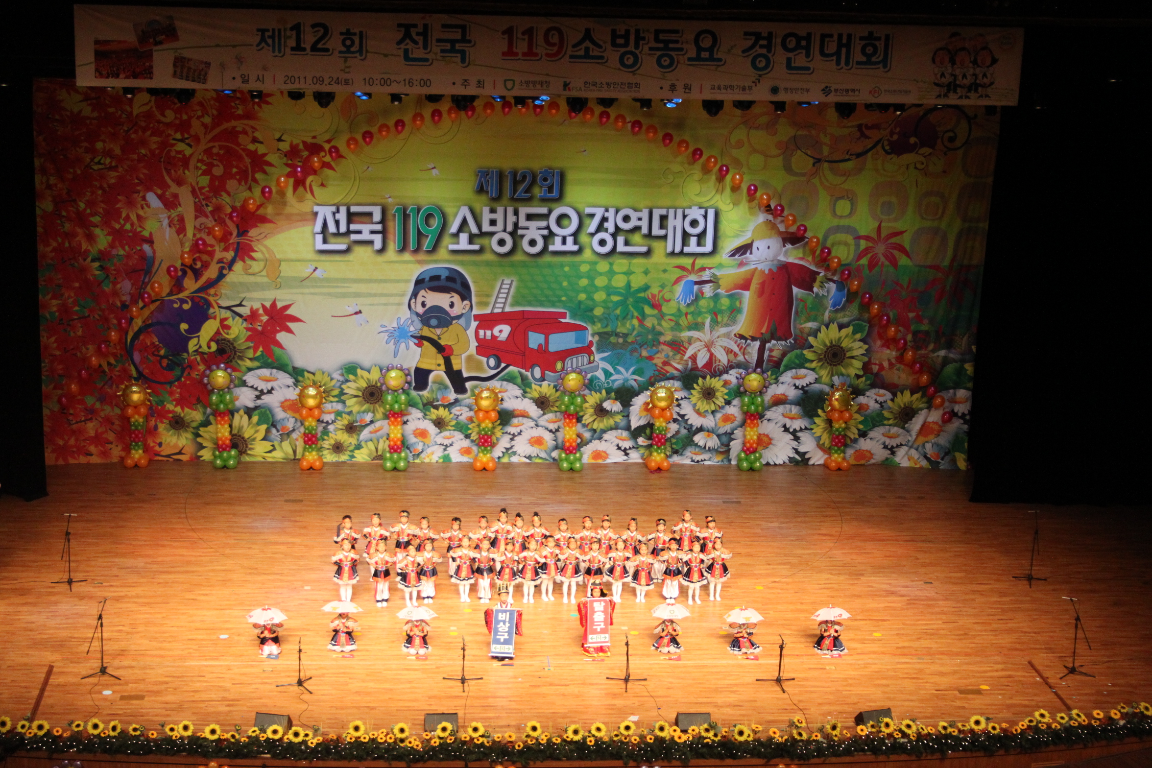 부산광역시 부산시민회관에서 열린 이번 소방동요대회에는 전국 17개 시ㆍ도의 유치부와 초등부 각 17팀이 참가해 기량을 겨뤘으며,