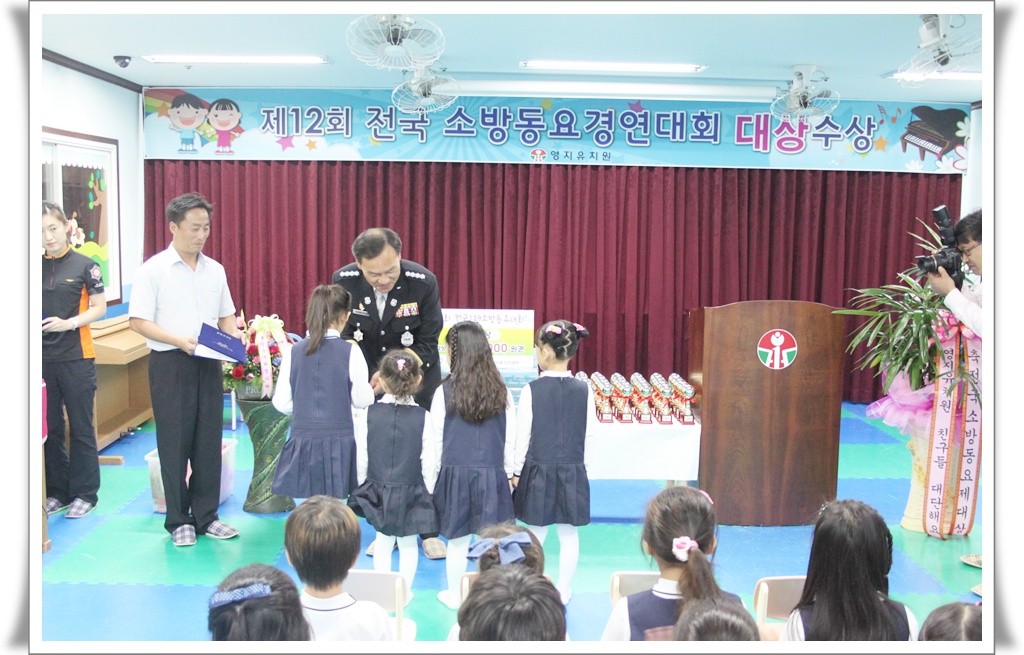 원주소방서(서장 박창진)는 29일 전국소방동요대회 유치부 대상을 수상한 영지유치원을 방문, 시상식을 가졌습니다.