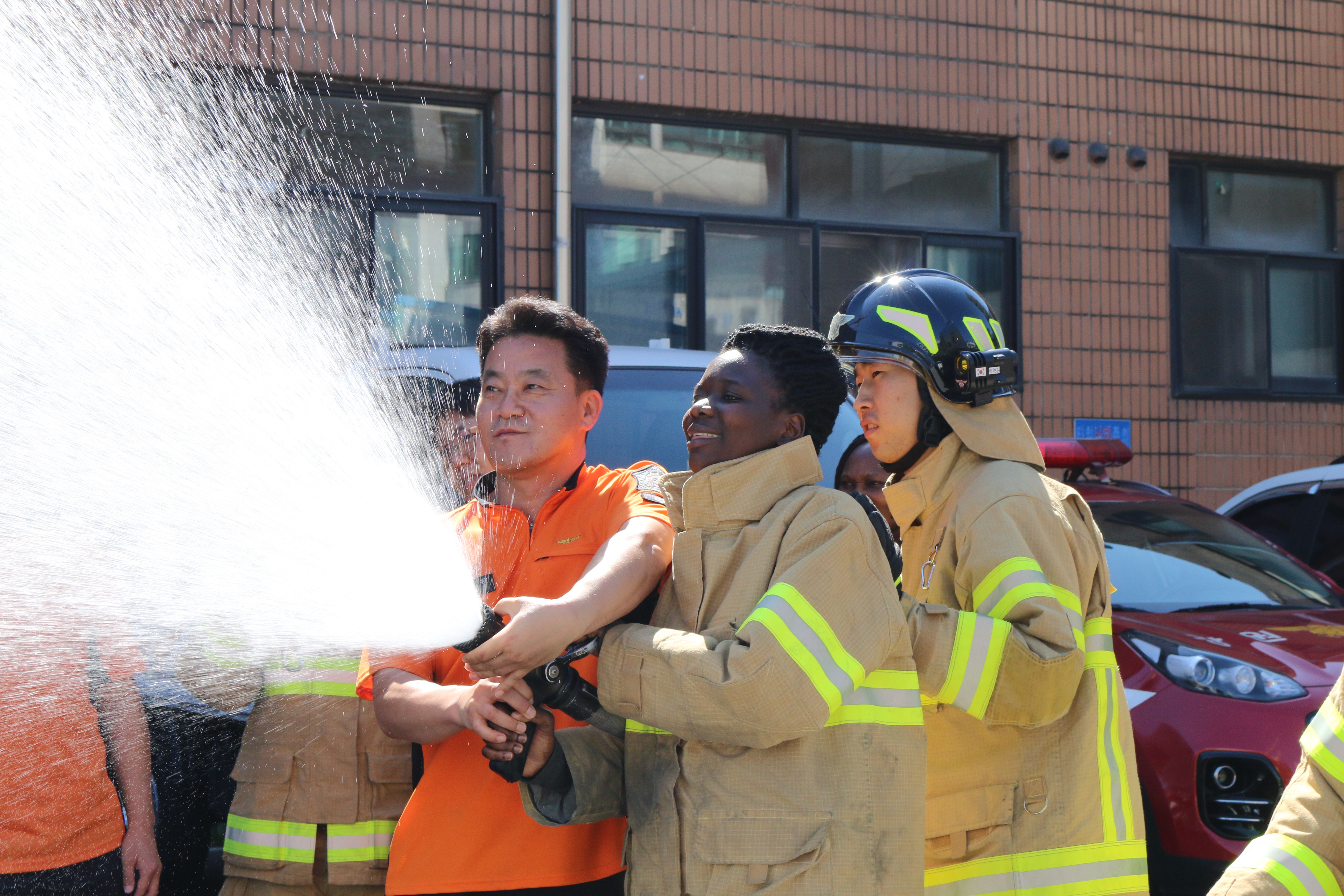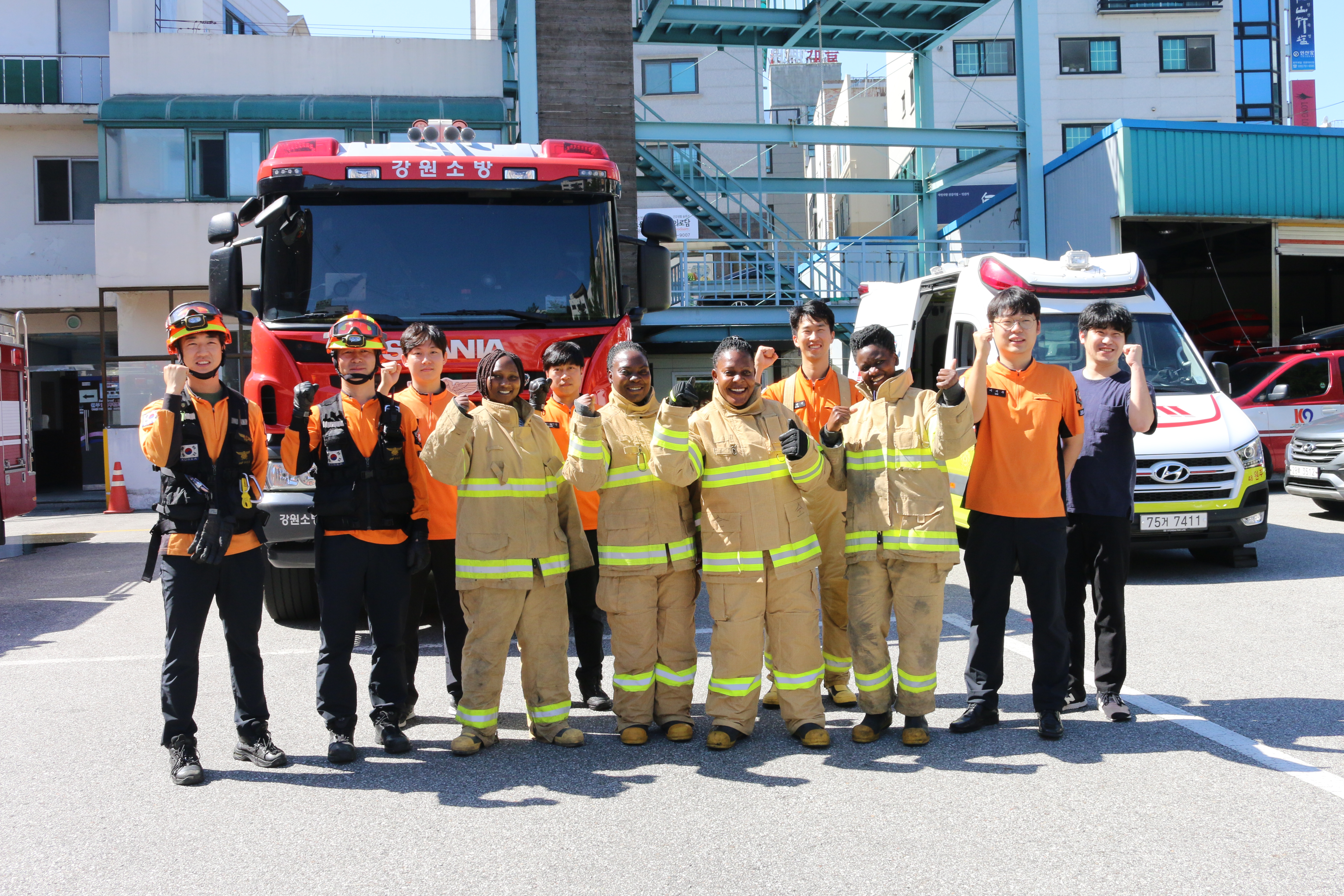 18일 오전 10시 우간다 응급의료진 등 6명이 원주소방서를 방문해 현장응급의료시스템 소개와 화재진압체험 시간을 가졌다.