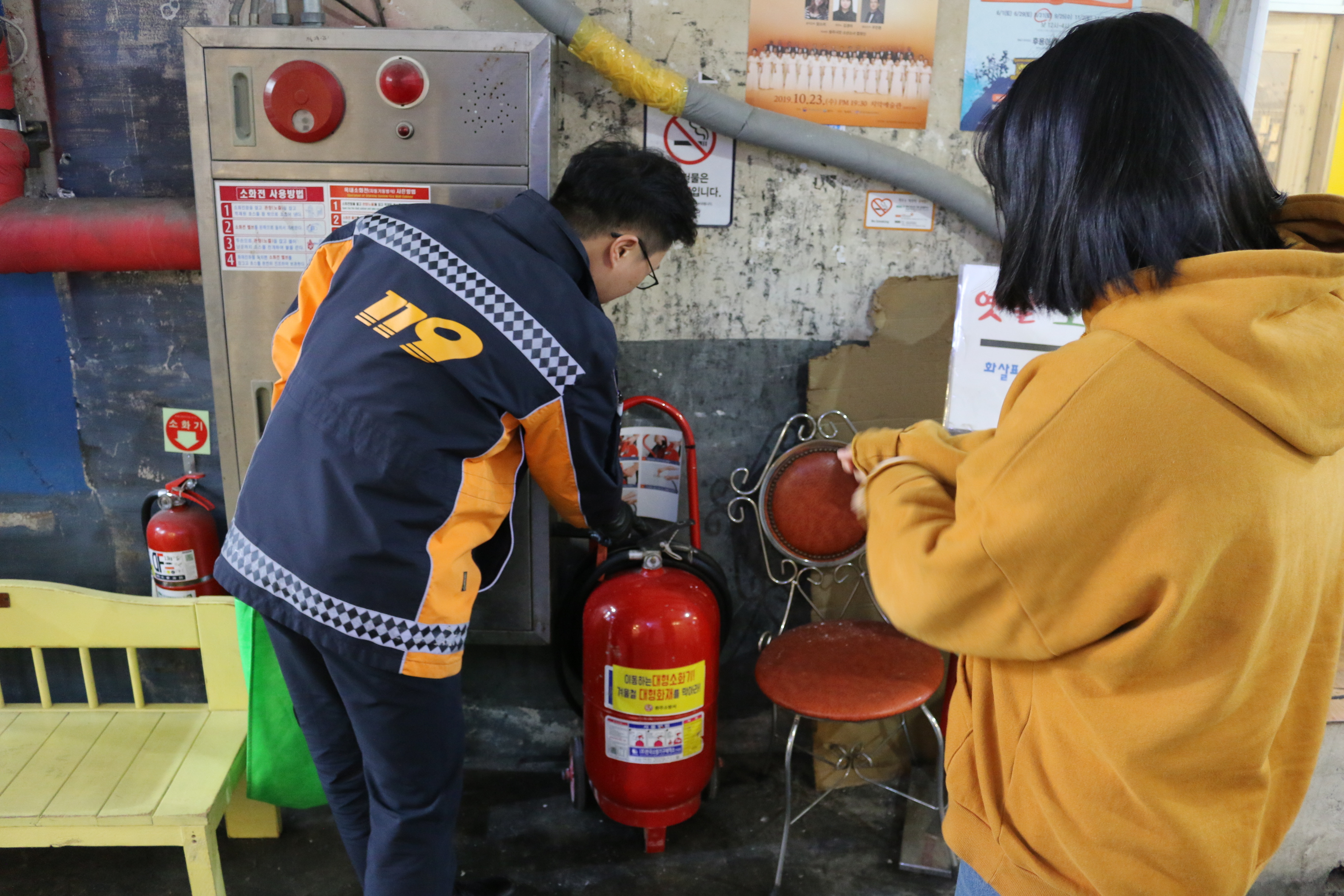 원주소방서(서장 이병은)는 중앙시장 관계인에 의한 화재 초기대응체계를 강화를 위해 대형소화기 5개를 배치