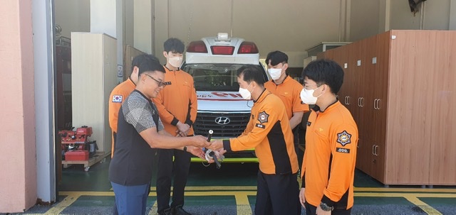 문막센터 김은하수 센터장 원격말벌퇴치기 기증(신림119안전센터)