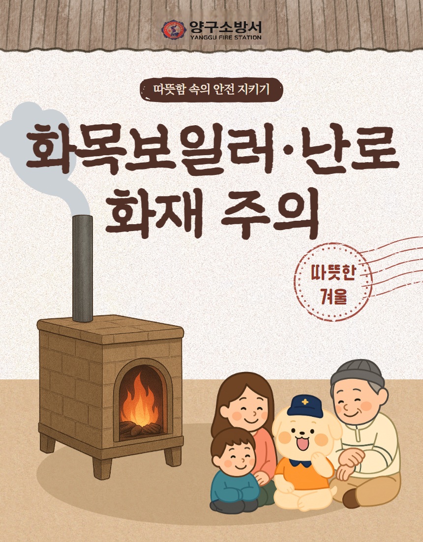 | 425 | 겨울철 화목보일러·난로 화재, 이렇게 예방하세요! | 양구 | 2025-12-11 | 48 | |