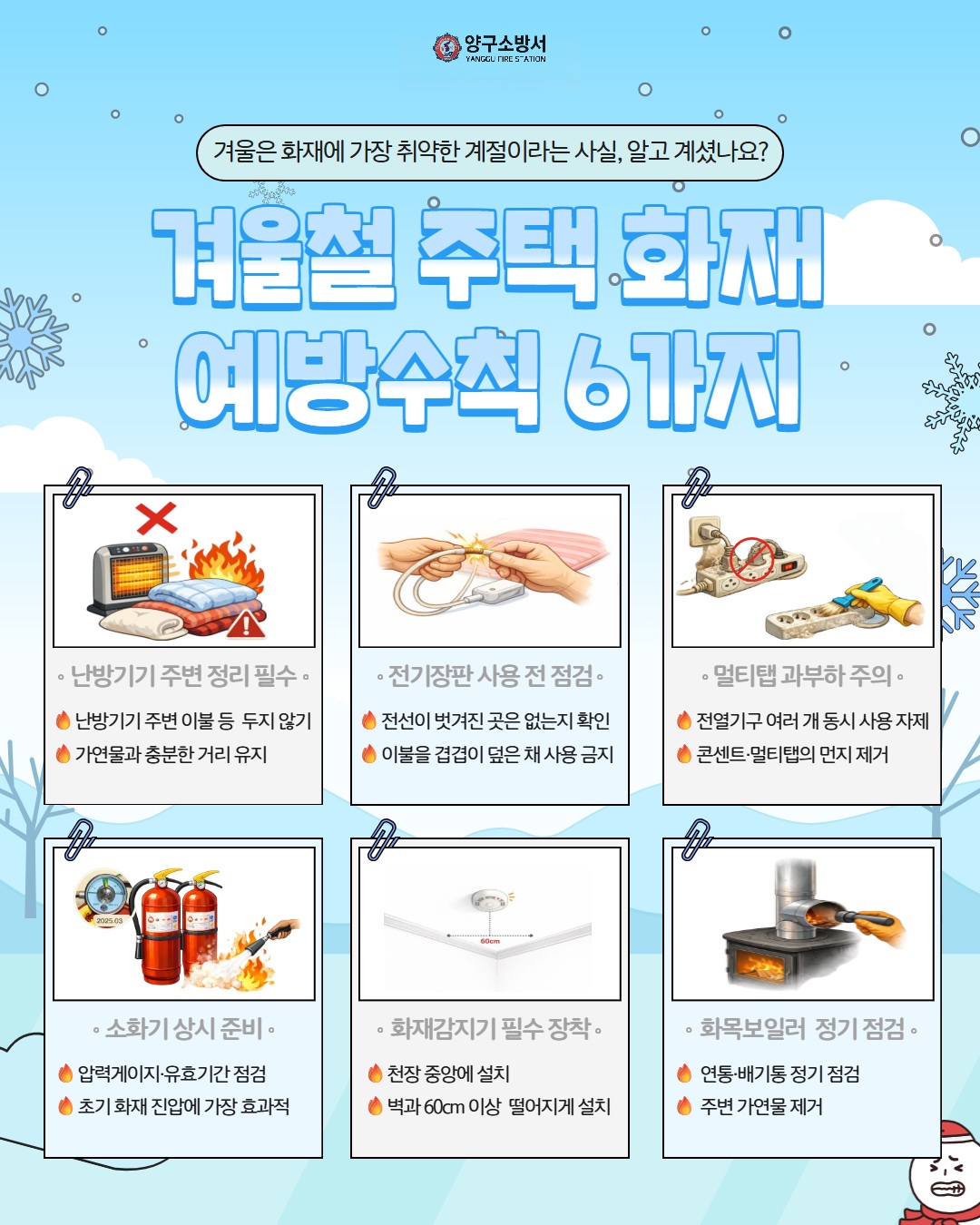 | 427 | 겨울철 주택 화재 예방수칙 6가지 꼭 지켜주세요 | 양구 | 2025-12-30 | 10 | |