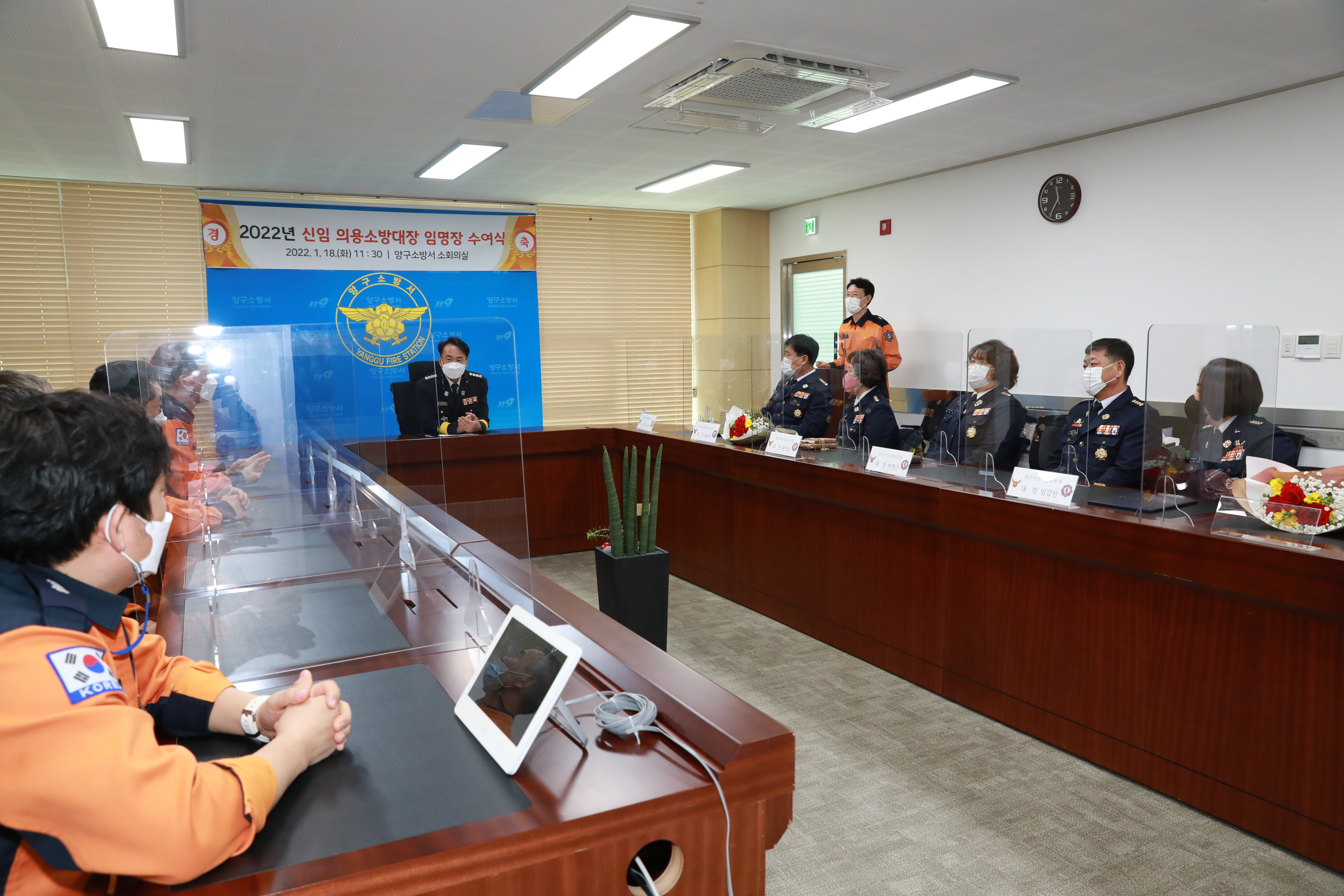 양구소방서는 18일 소방서 소회의실에서 신임 의용소방대장 임명장 수여식을 개최 및 수여 대상자 5명에게 임명장을 전달했습니다.