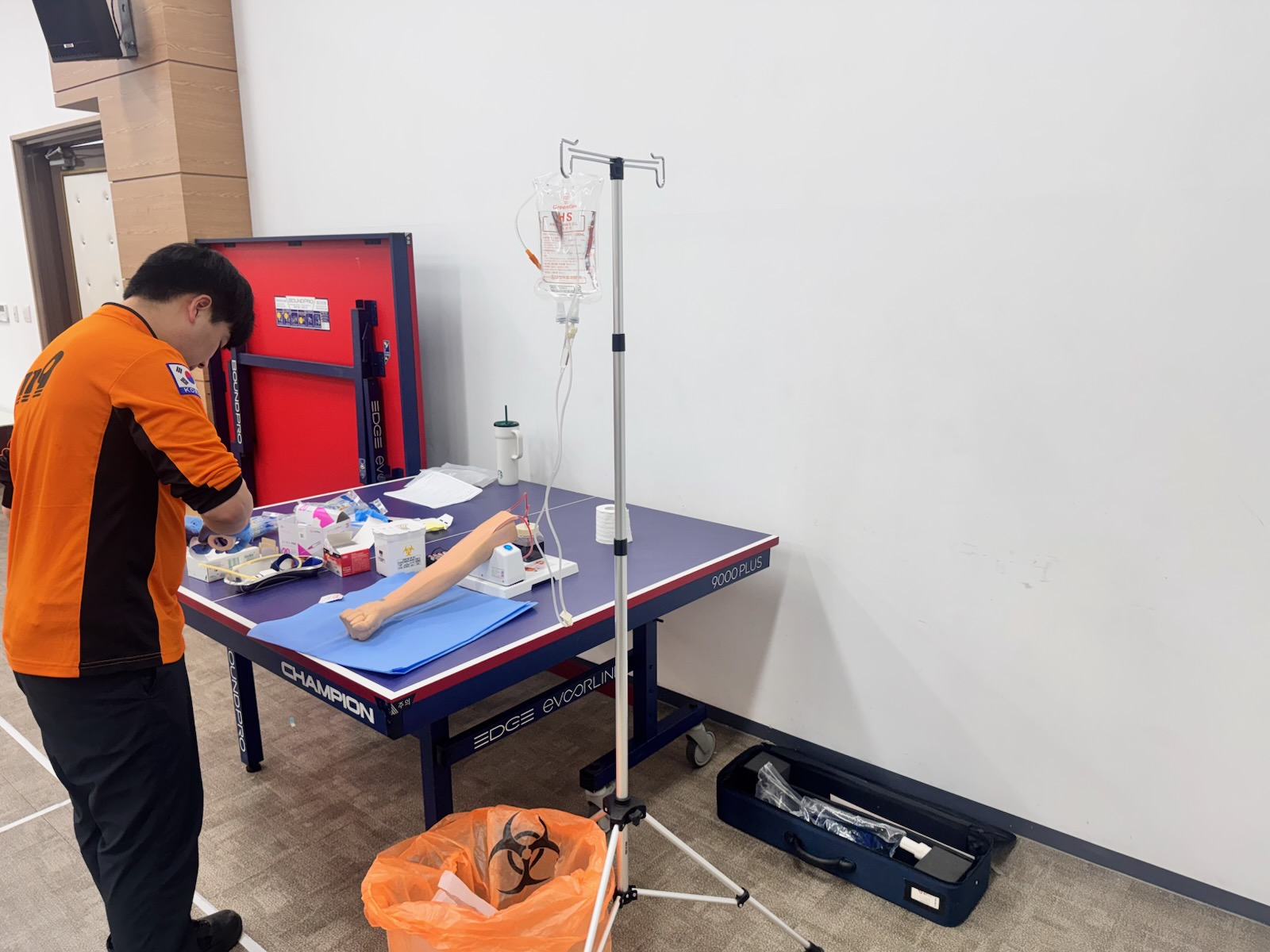 실기 평가 : 공기호흡기 착용 및 비상호흡법, 로프 매듭법, 수직구조 및 요구조자 들것 고정, 정맥로 확보, AED 사용