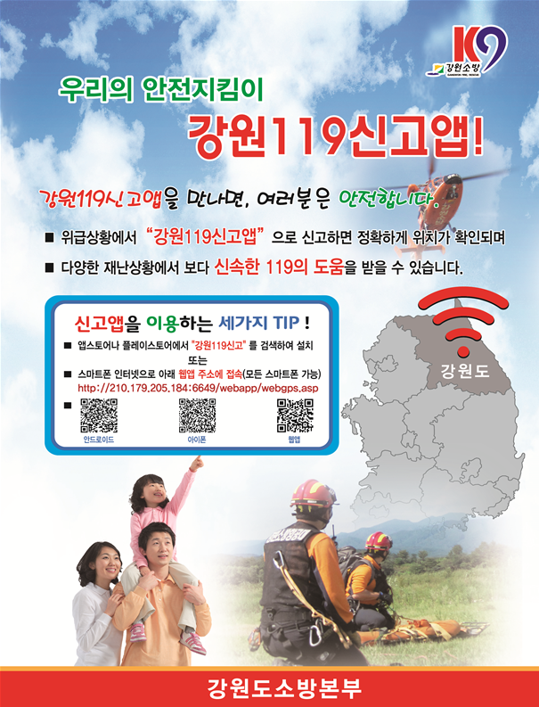 다섯째, 등산로에 설치된 산악위치표지판을 확인하고, 등산 전 강원119신고앱을 설치, 등산앱 등을 설치하여 조난 시 자신의 위치를 확인할수 있도록 한다.