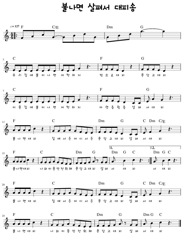'불나면 대피송' 악보 및 음원 알림