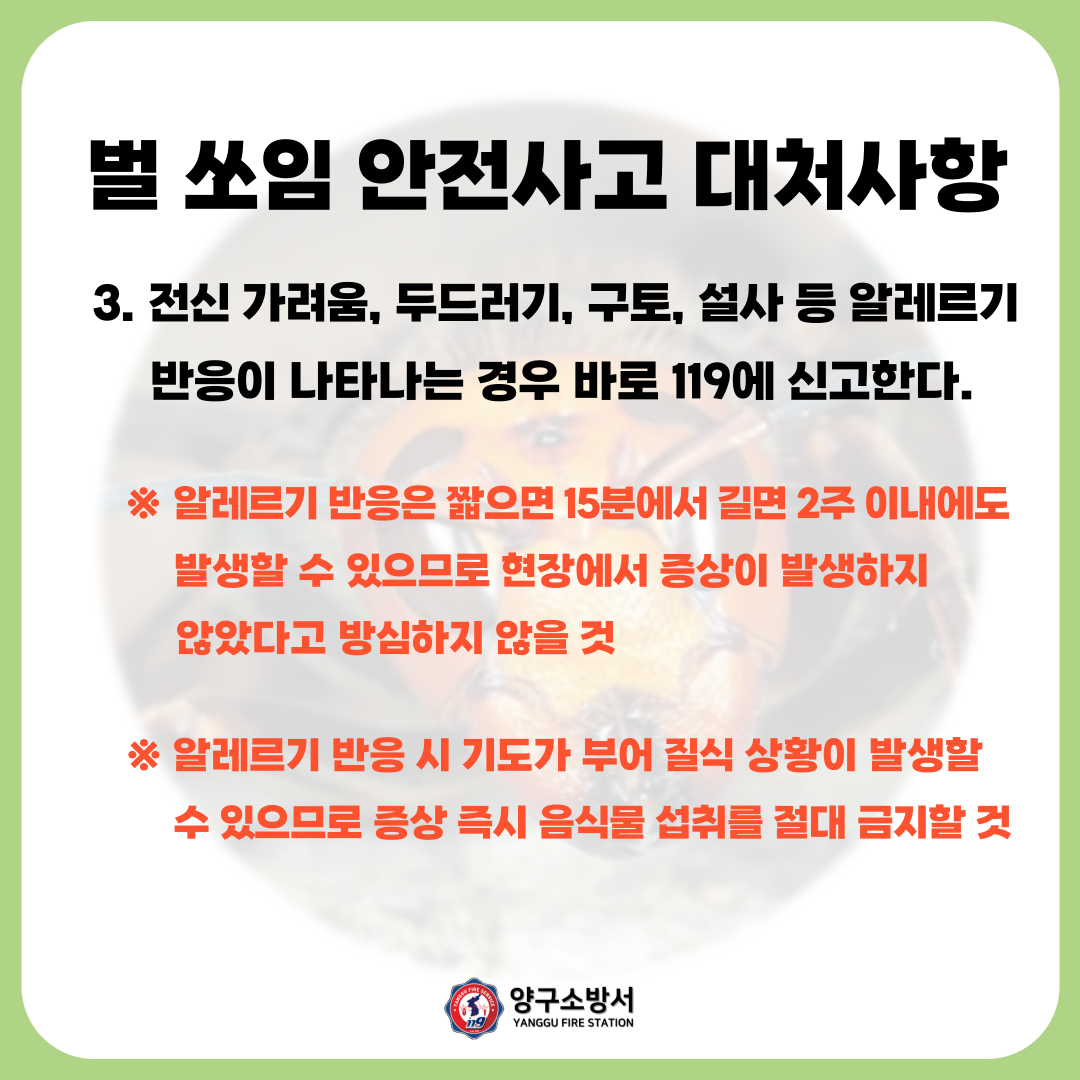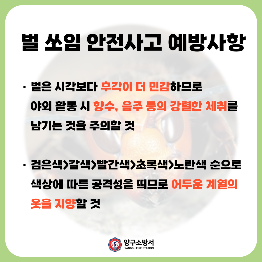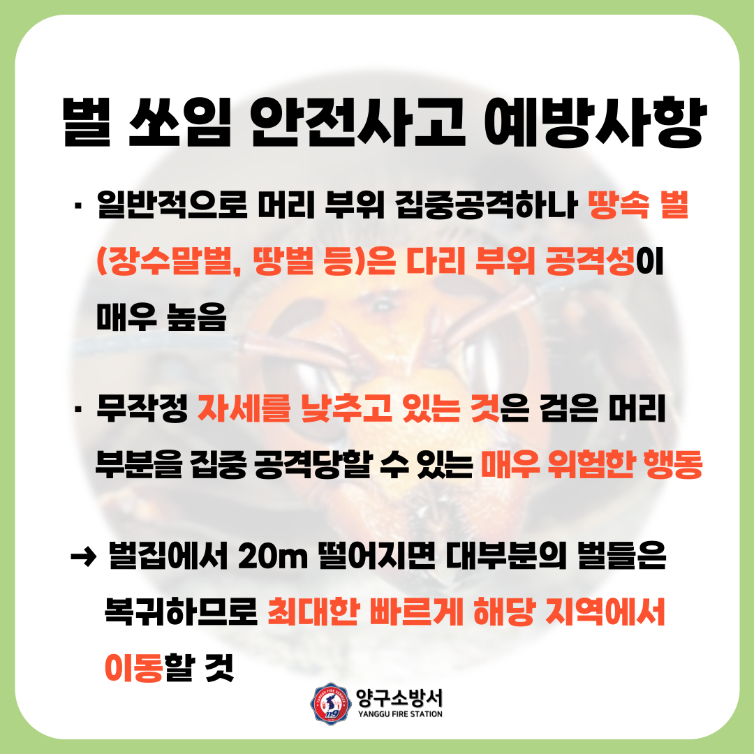벌 쏘임 안전사고 대비 카드뉴스 알림
