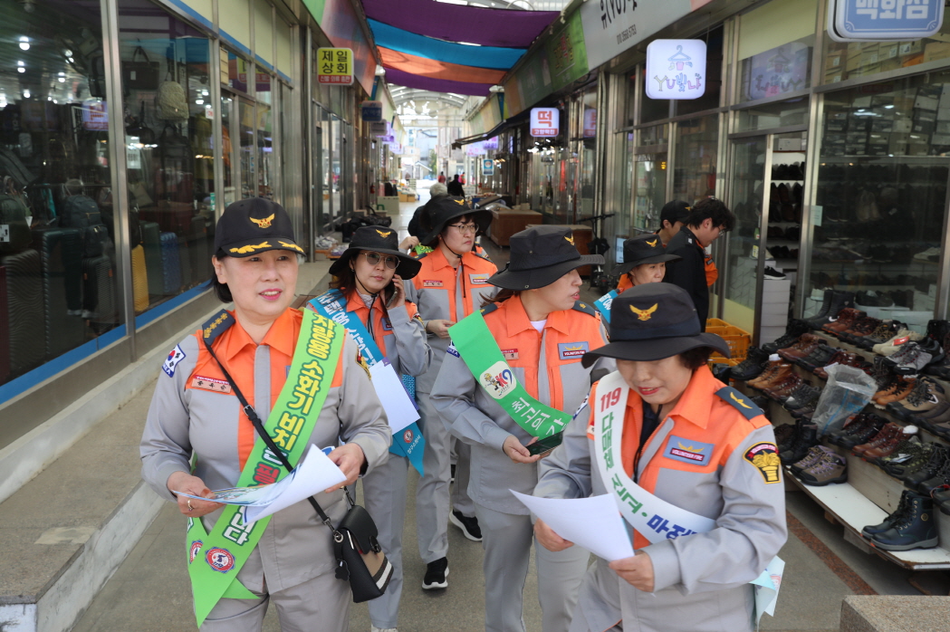 시장 상인분들과 주민 여러분께 화재 예방 요령, 초기 대처법,