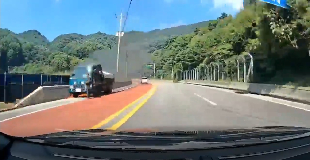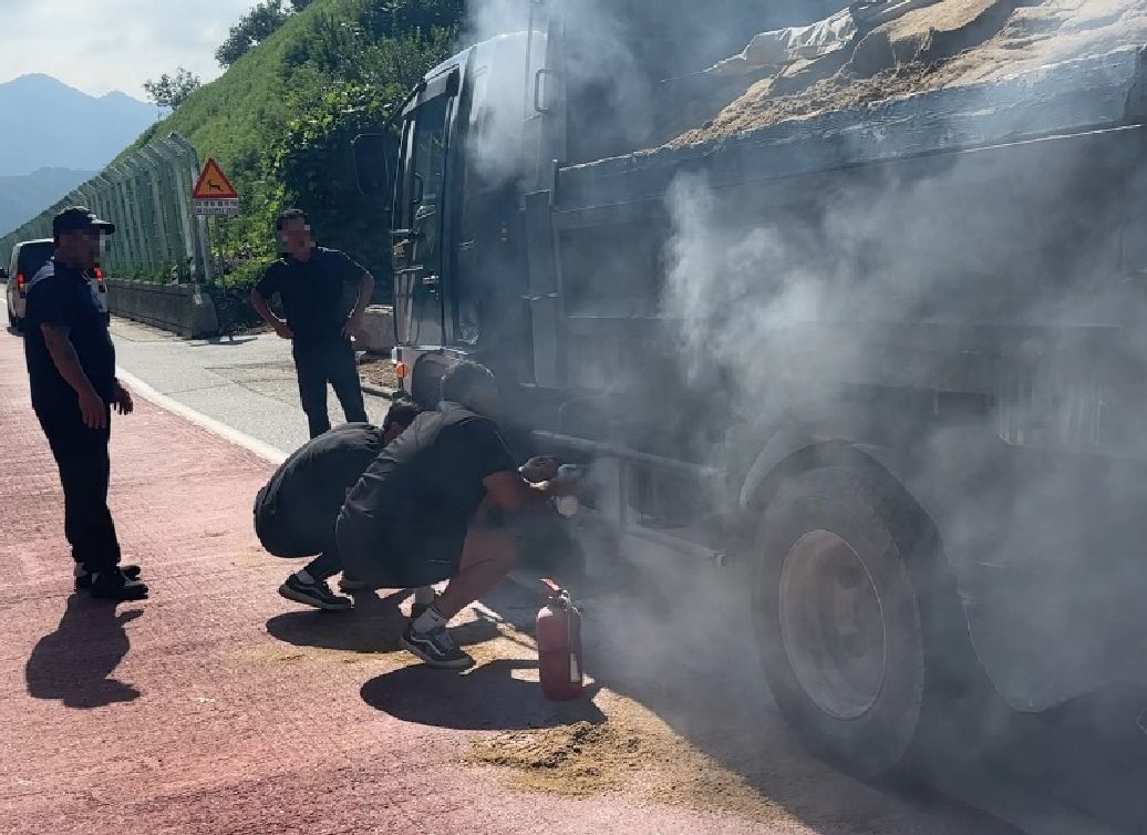춘천시 북산면 추곡터널 인근에서 화재 차량(4.5톤 트럭)을 발견!