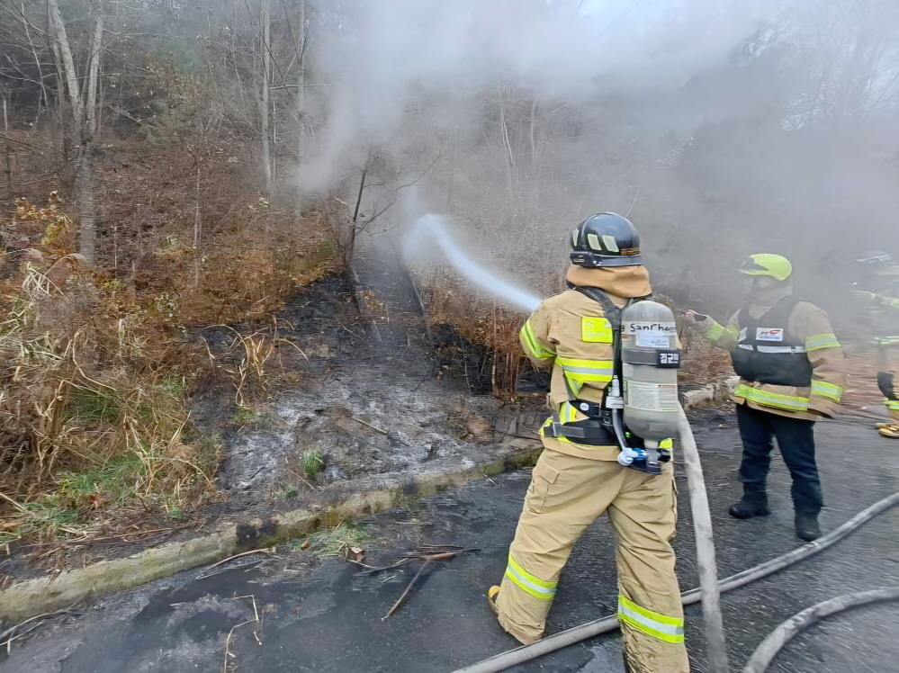 현장은 산림과 가까운 곳이어서 자칫하면 산불로 확산될 우려가 있었지만,