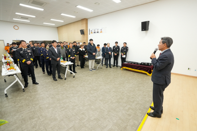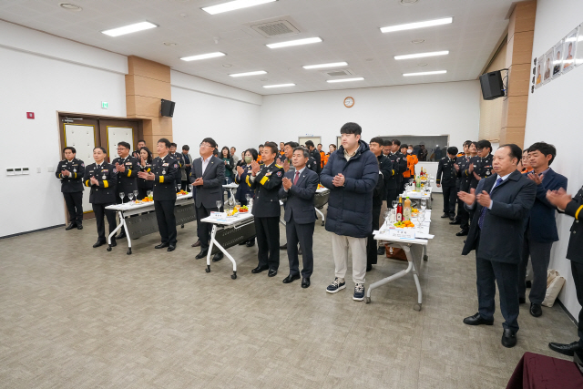 ▲ 제62주년 소방의 날 기념식이 지난 8일 양구소방서 대회의실에서 서흥원 양구군수, 정창수 군의회의장, 용석진 양구소방서장 및 소방공무원과 관계자들이 참석한 가운데 열렸다.