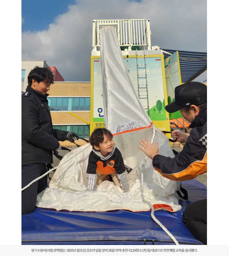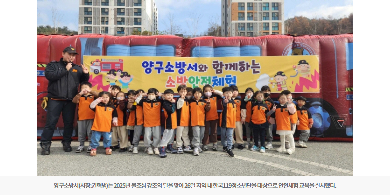 권혁범 양구소방서장은 “어린이들이 몸으로 직접 체험하며 재난 상황에 대한 대응 능력을 키울 수 있도록 앞으로도 체험 중심의 교육을 지속적으로 추진하겠다”고 말했다.