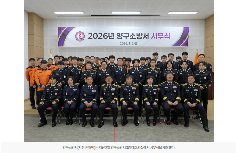 권혁범 양구소방서장은 신년사를 통해 “군민의 안전을 최우선 가치로 삼아 현장 중심의 소방행정을 펼치고, 청렴하고 신뢰받는 조직문화 조성에 힘쓰겠다”고 말했다.