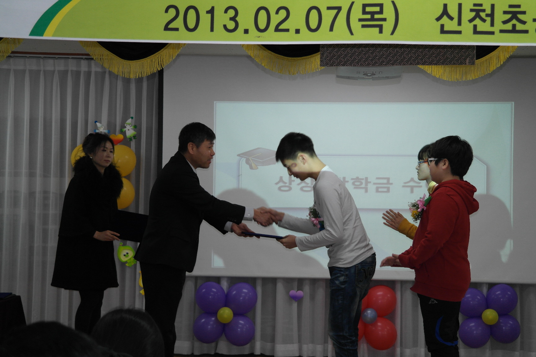 한반도의용소방대(대장 : 금중경)에서는 신천초등학교 졸업식을 맞이하여 장학금을 전달하였습니다.