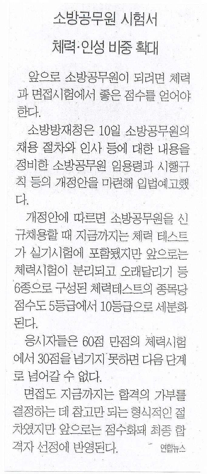 소방공무원 시험서 체력.인성 비중 확대