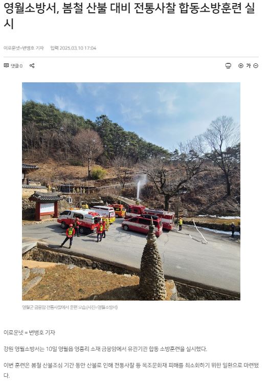 봄철 산불 대비 전통사찰 합동소방훈련 (25년 3월 10일)