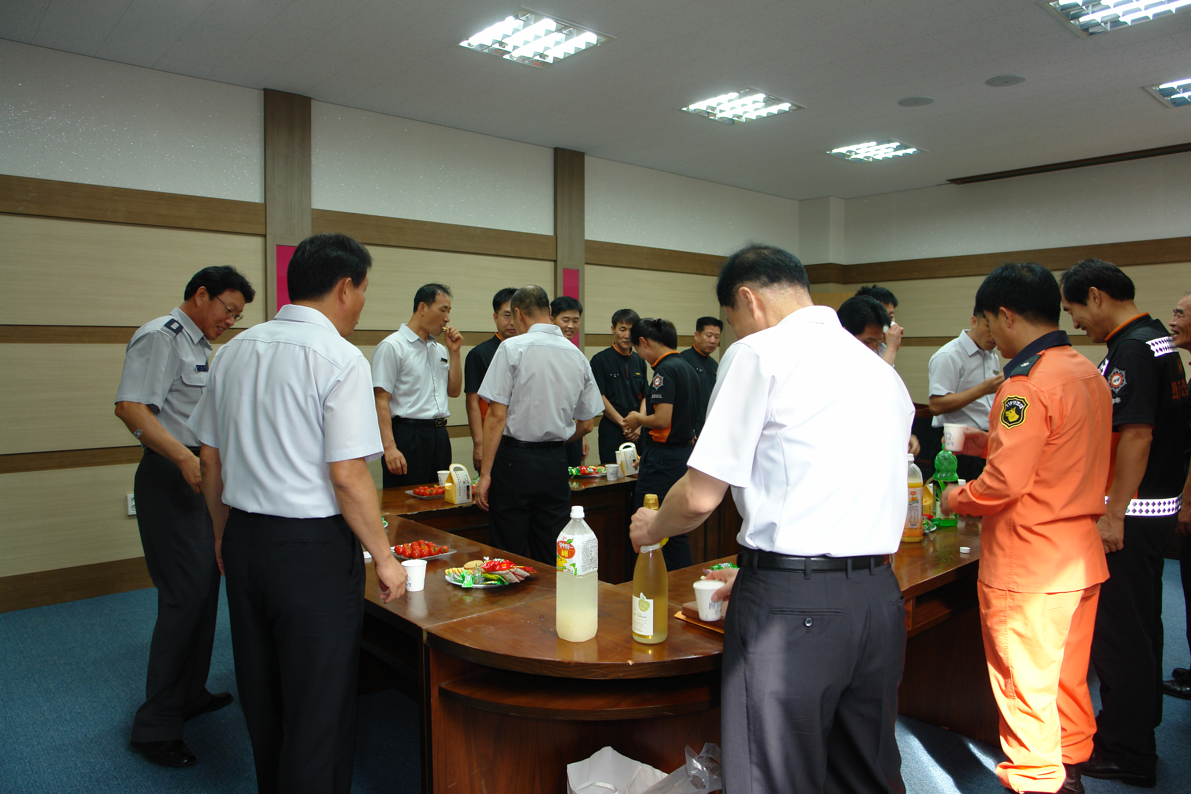 영월소방서에서는 오는 9월4일 천안 백석대학교에서 있는 소방위 승진시험에 대비 열심히 준비중인 응시생들을 위하여 꼭 합격하기 바라는 직원들의 마음을 모아 소회의 실에서 격려 간담회를 가졌습니다