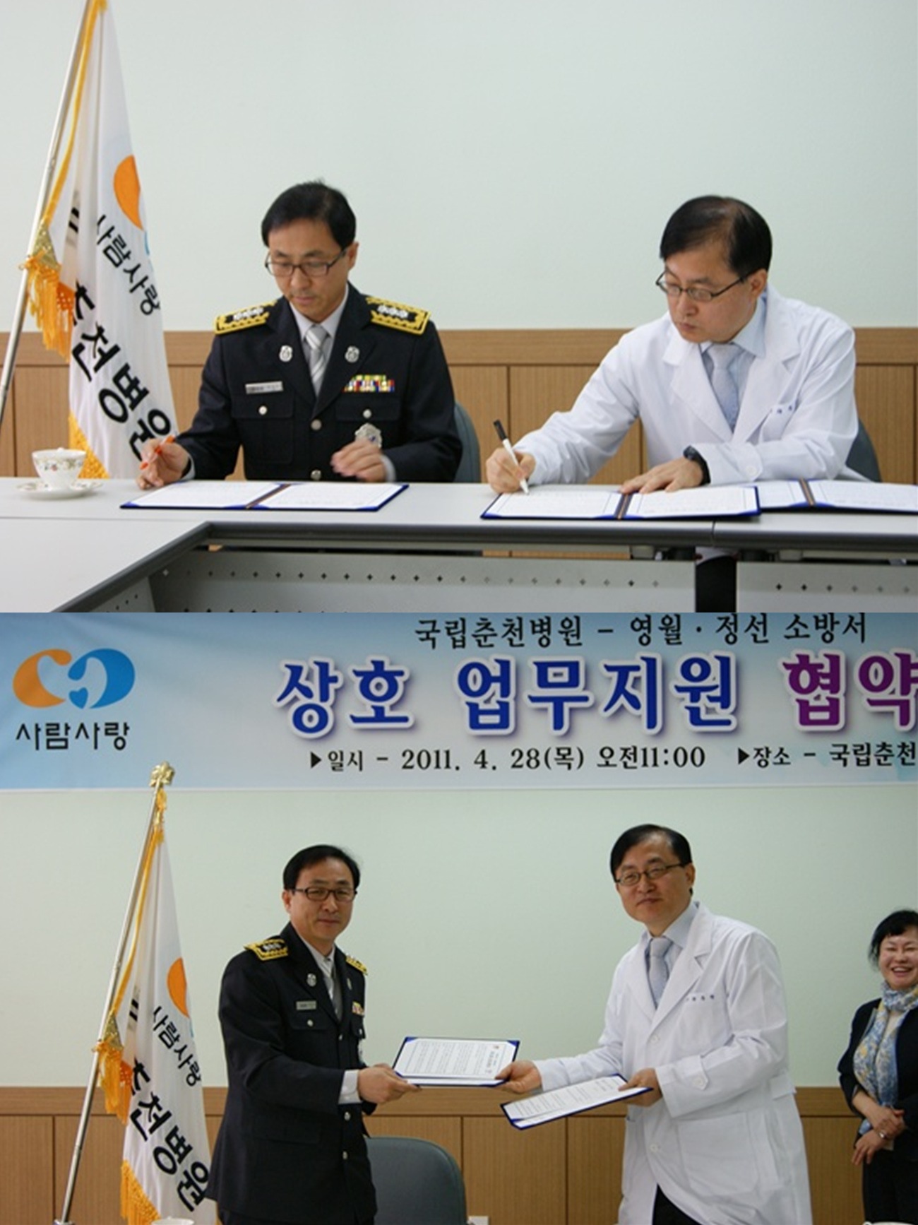 소방활동 대원에 대하여 체계적인 외상후 스트레스 관리를 위하여 4월 28일 국립춘천병원과 업무협약을 하였습니다.