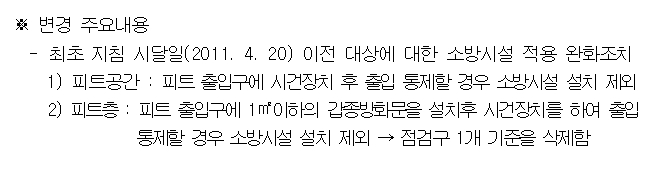 피트공간 및 피트층 소방시설 설치 등 변경지침 알림