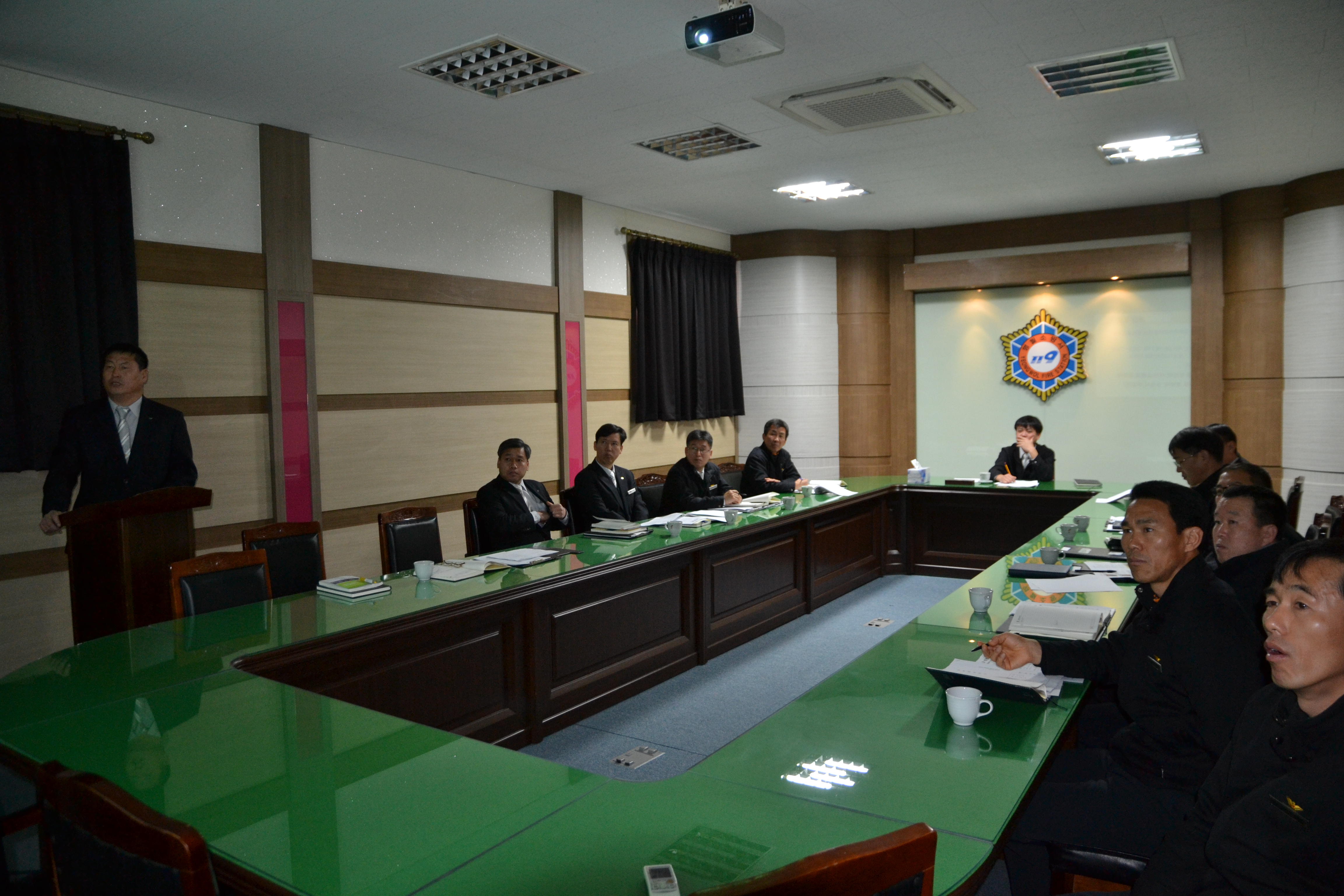 1. 14(월) 오전 9시 소방서 소회의실에서 서장, 과장, 119안전센터장 등이 참석한 가운데 위험예지훈련 실시 결과 발표회를 가졌습니다.
