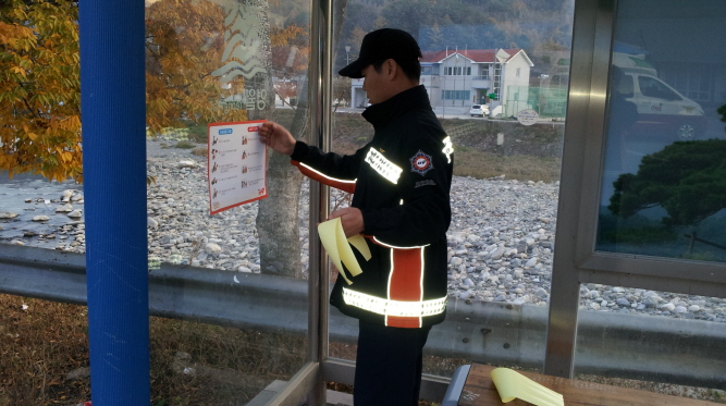 버스정류장 화재예방 홍보물 부착