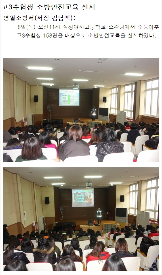 | 447 | 고3수험생 소방안전교육 실시 | 예방 | 2011-12-06 | 684 | |