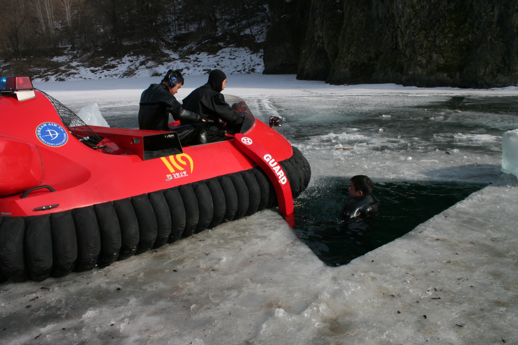 - 사다리 및 호버크래프트 활용 수상인명구조훈련등 실시함.