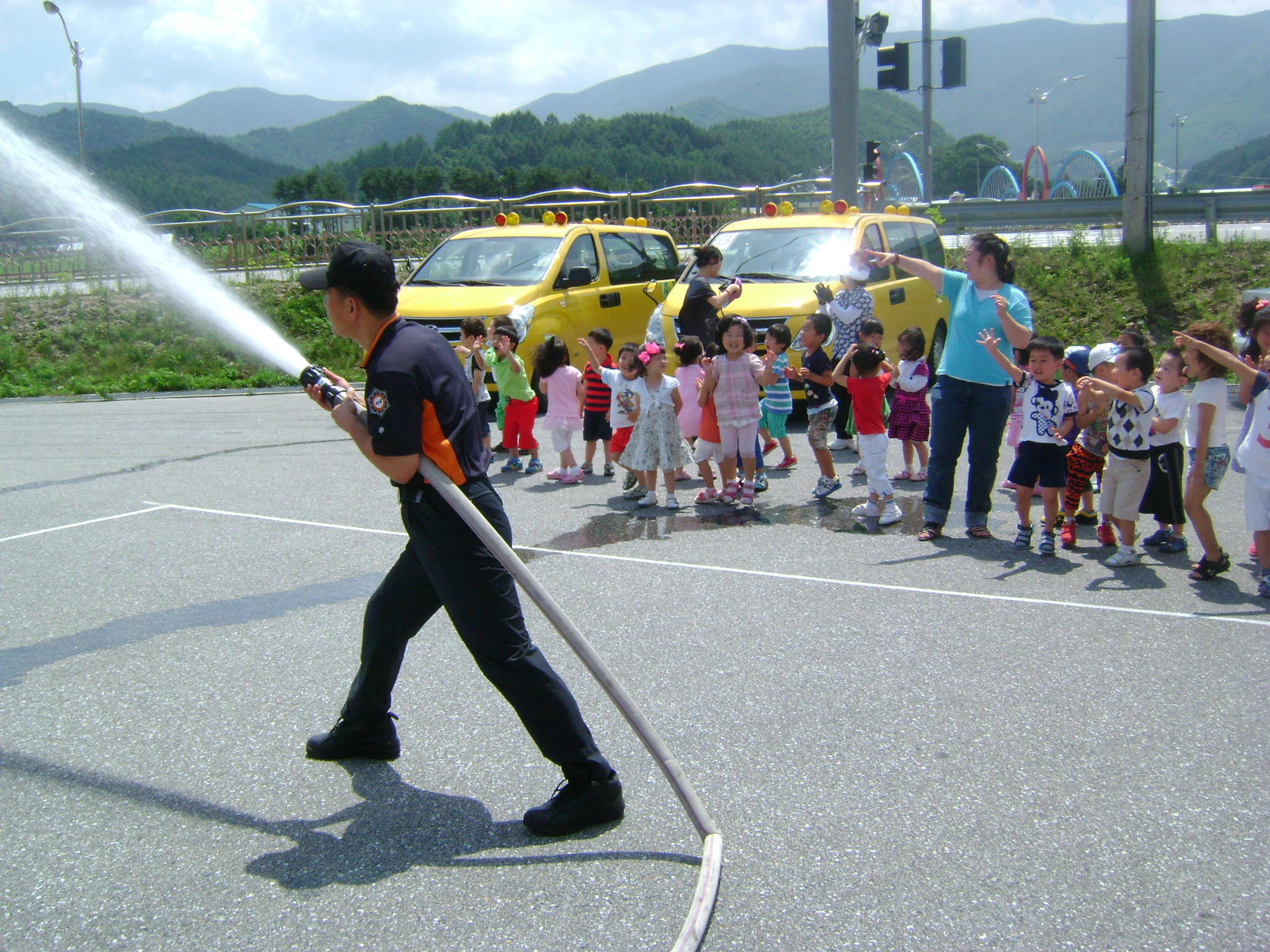 - 펌프차,구급차등 적재장비 설명 및 장비작동 시범(방수등)