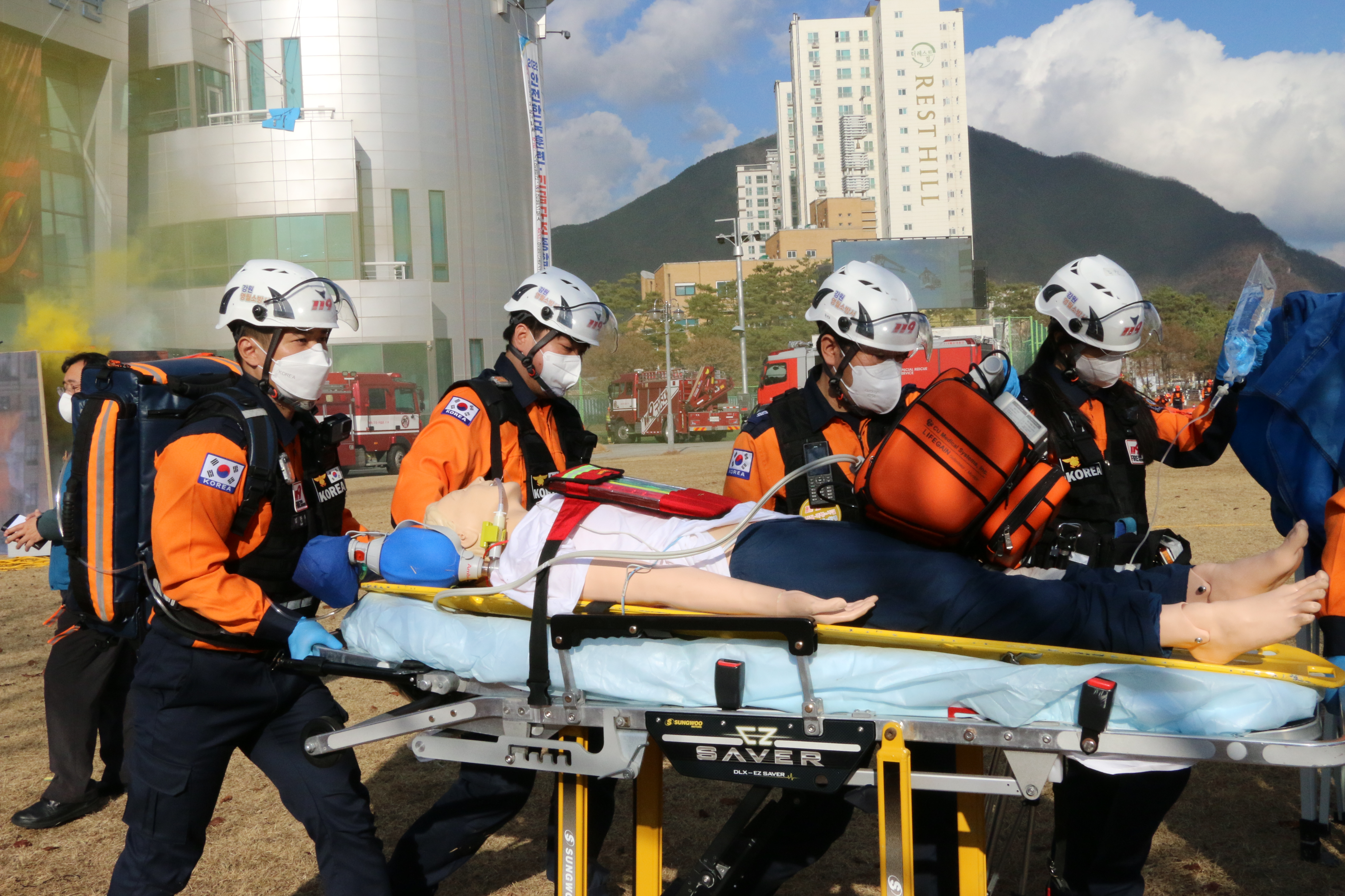 ○ 이번 훈련은 원인미상의 가스폭발로 화재가 발생하여 대형 인명피해가 발생한 상황을 가정하여 훈련을 진행했다.